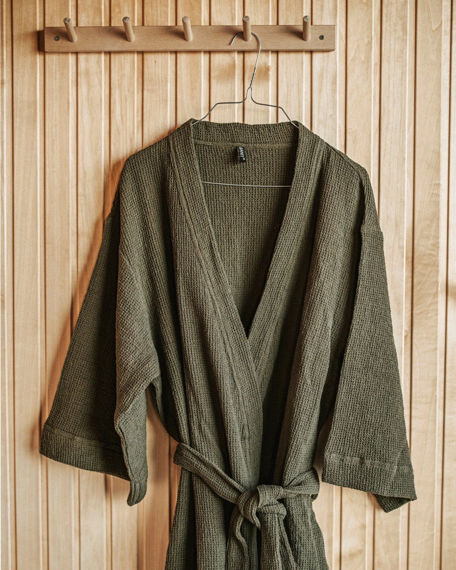 Kuscheliger Bademantel in Einheitsgröße und Unisex-Modell, der sich gut im Badezimmer aufbewahren lässt, wenn er nicht gebraucht wird. Es besteht aus 100 % Bio-Baumwolle und ist sowohl GOTS-zertifiziert als auch mit dem Öko-Tex-Siegel versehen. Der Bademantel hat eine Waffelstruktur, die sich weich auf der Haut anfühlt.