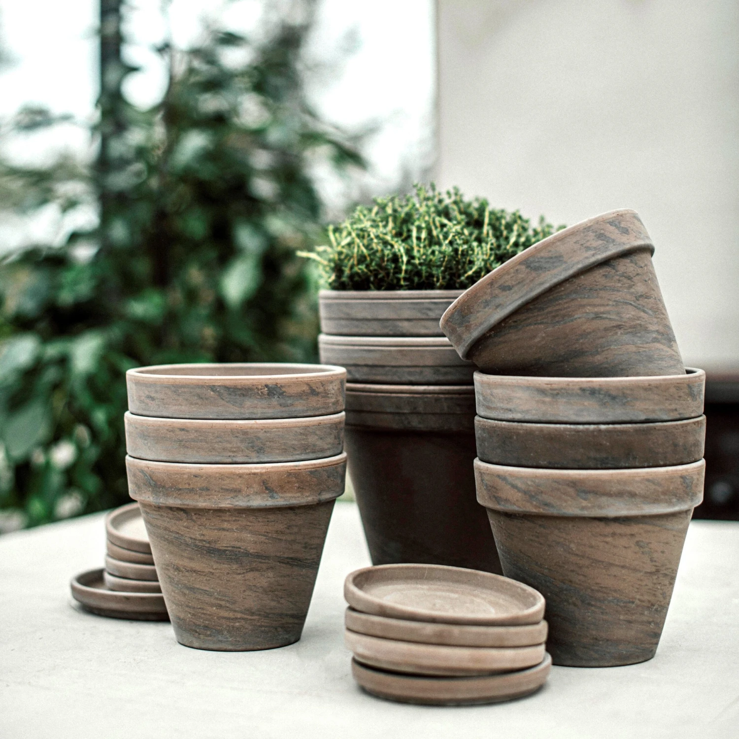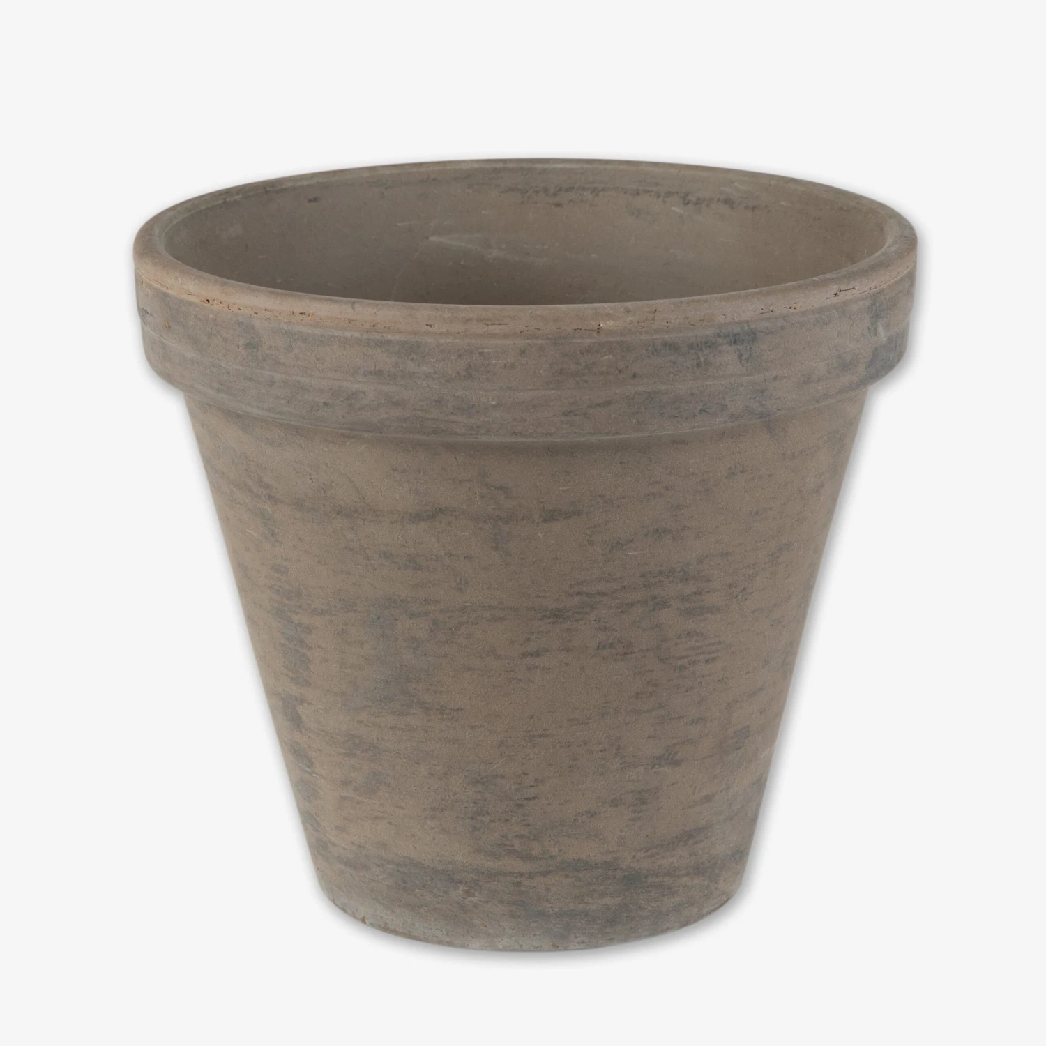 | Stilvoller grauer Terrakottatopf mit smartem Abflussloch am Boden. Der Topf ist handgefertigt, frostbeständig und hat einen passenden Untersetzer (Art. Nr. 401511). Der Topf ist in zwei Größen erhältlich. |