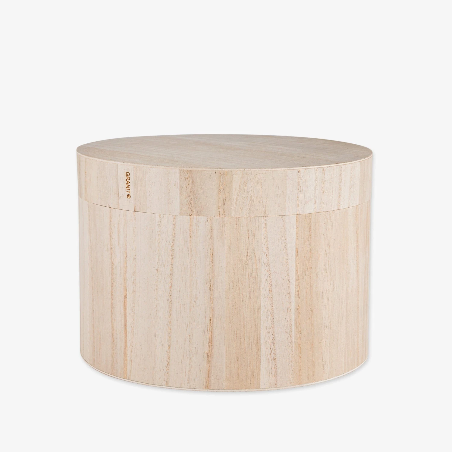 Stilvolle runde Box aus unbehandeltem hellem Holz, die sich für alle Arten von Aufbewahrung eignet und auch eine schöne Dekoration ist. Die Box ist in zwei Größen erhältlich. Höhe 19 cm, Ø 27 cm.