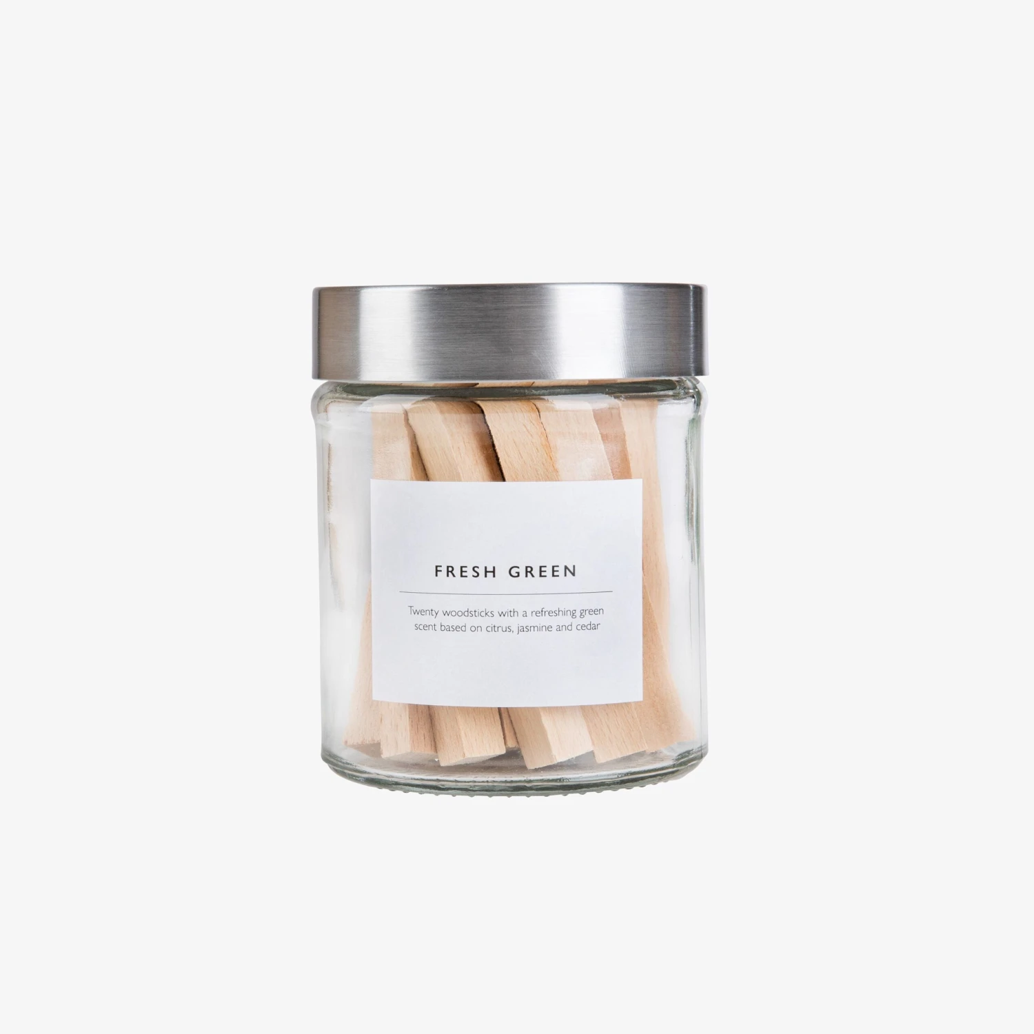 Diffuser in Form eines Glasbehälters mit 20 rechteckigen Duftstäbchen, die einen angenehmen Duft im Raum verbreiten. Der Duft hält sich in dem geöffneten Behälter etwa 6–8 Wochen. Dieser Duft heißt Fresh Green, mit einer Kopfnote, die nach Zitrusfrüchten und grünen Blättern duftet, einer Herznote aus Jasmin und Galbanum und einer Basisnote aus Zedernholz und Moos.