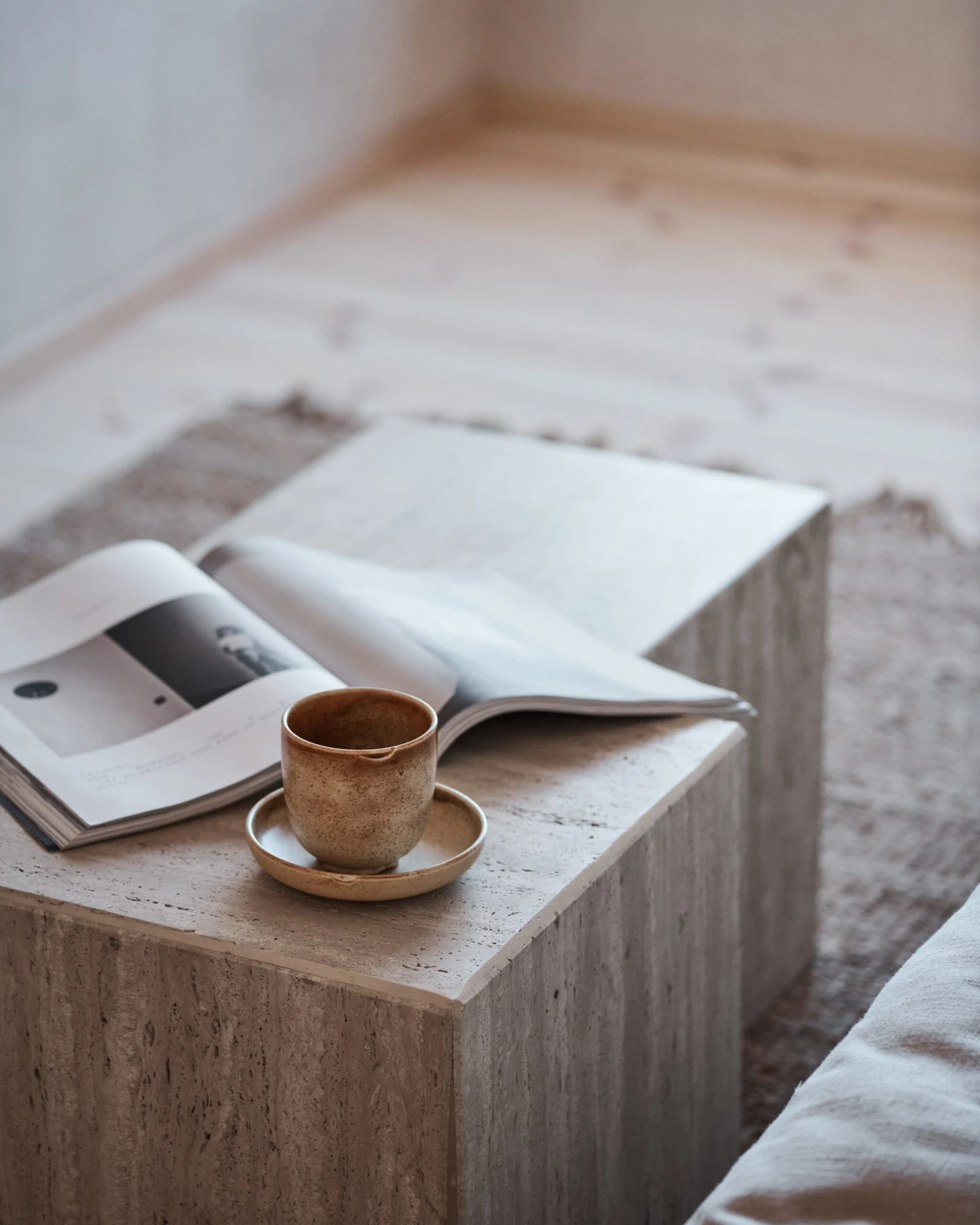 Eleganter, beiger Becher ohne Henkel, der sich gleichermaßen für Kaffee und Tee eignet. Wenn du lieber etwas Kaltes aus deinem Becher trinken möchtest, ist das auch in Ordnung. Der Becher ist in zwei weiteren Farben erhältlich, die gut miteinander harmonieren.