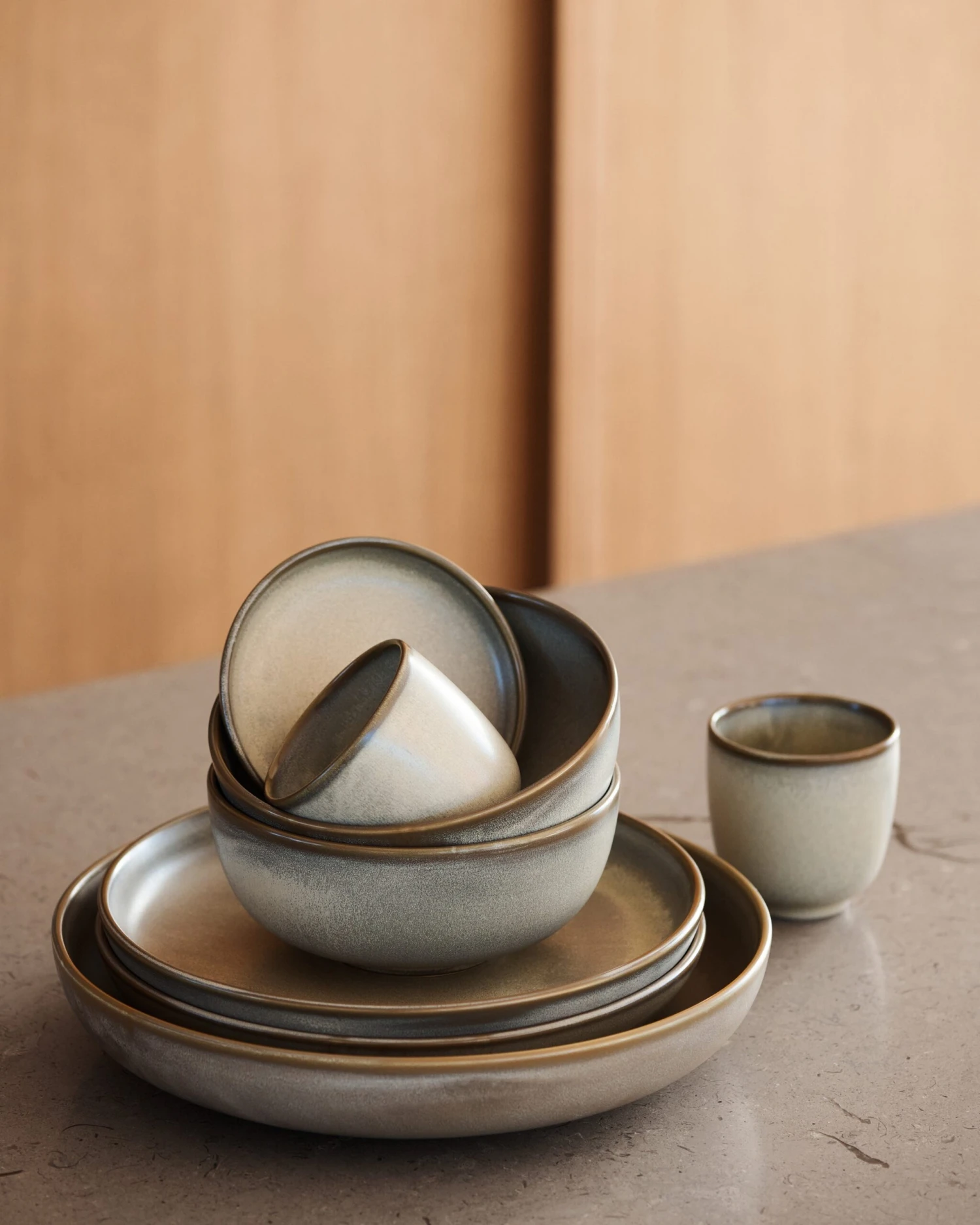 Die Serie Toscana von Dukas ist ein hochwertiges Service, das für eine lange Lebensdauer konzipiert ist. Es besteht aus haltbarem Porzellan in drei Farben, die miteinander kombiniert oder einzeln verwendet werden können. Dank der reaktiven Glasur, die im Herstellungsverfahren zum Einsatz kommt, ist jedes Produkt ein Unikat mit unterschiedlichen Farbschattierungen und Mustern.