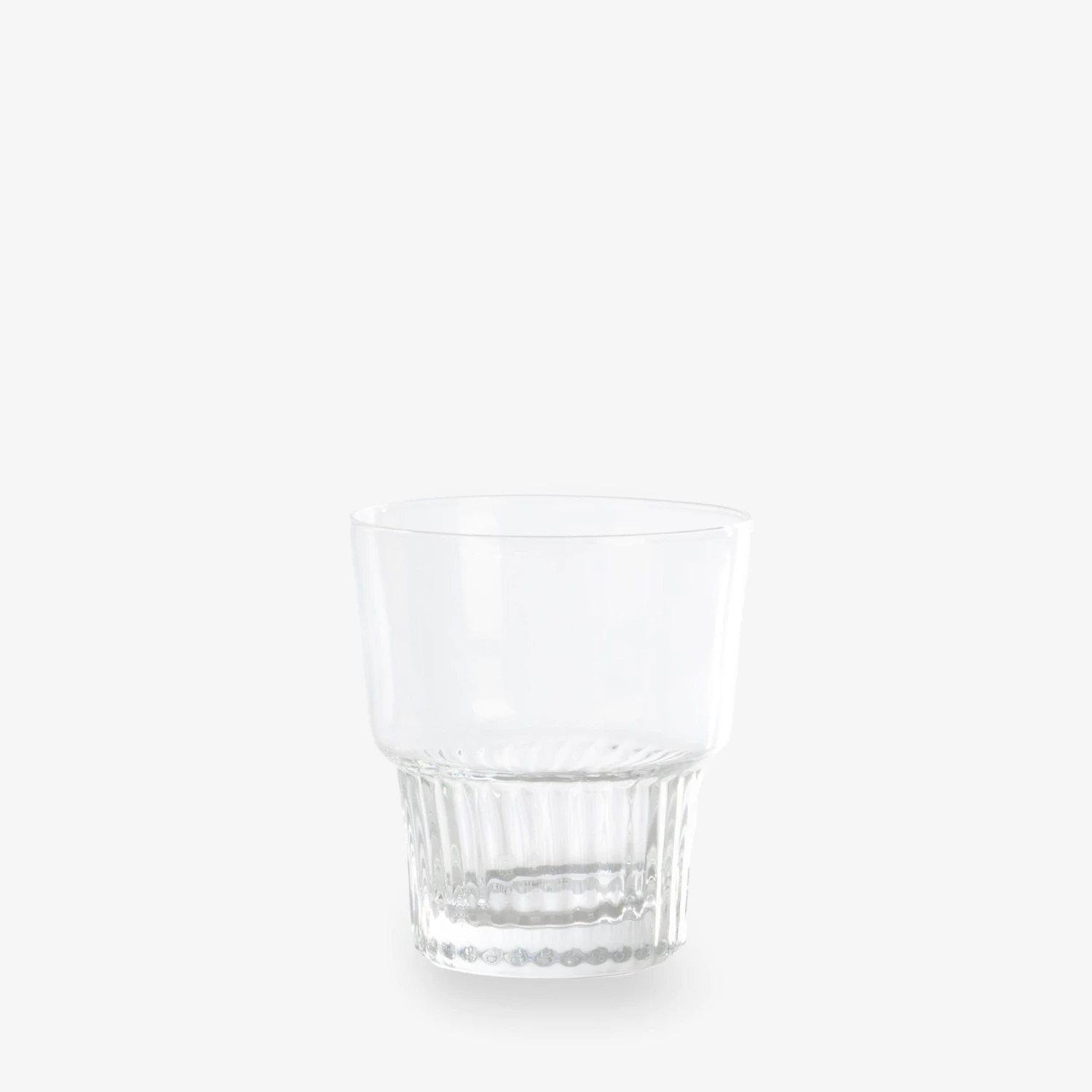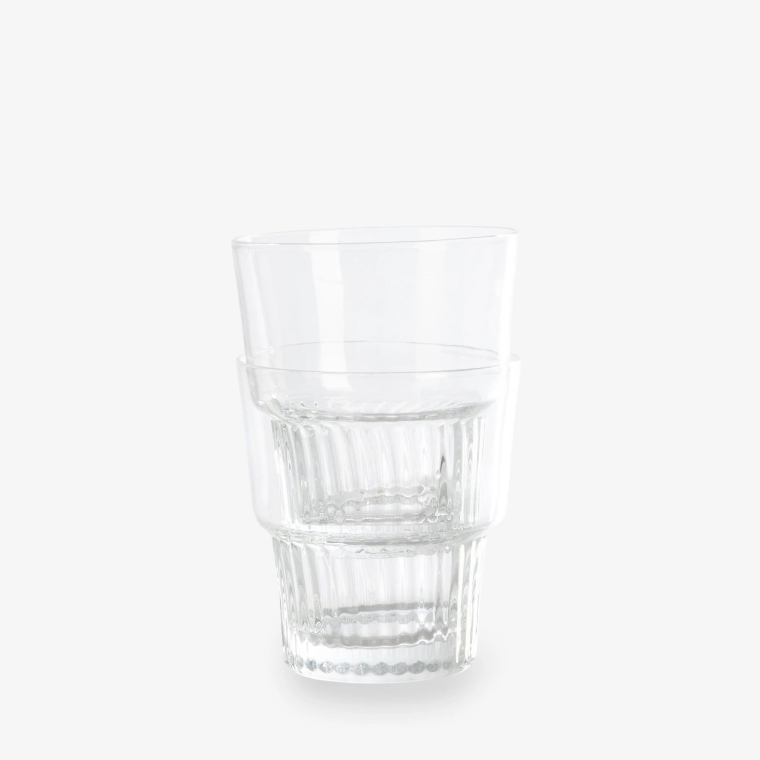 Transparentes Glas für Wasser oder andere Getränke. Dank der nach unten schmaler werdenden Form mit Rillen ist das Glas auch für Kinder bestens geeignet. Das Glas fasst 16 cl.