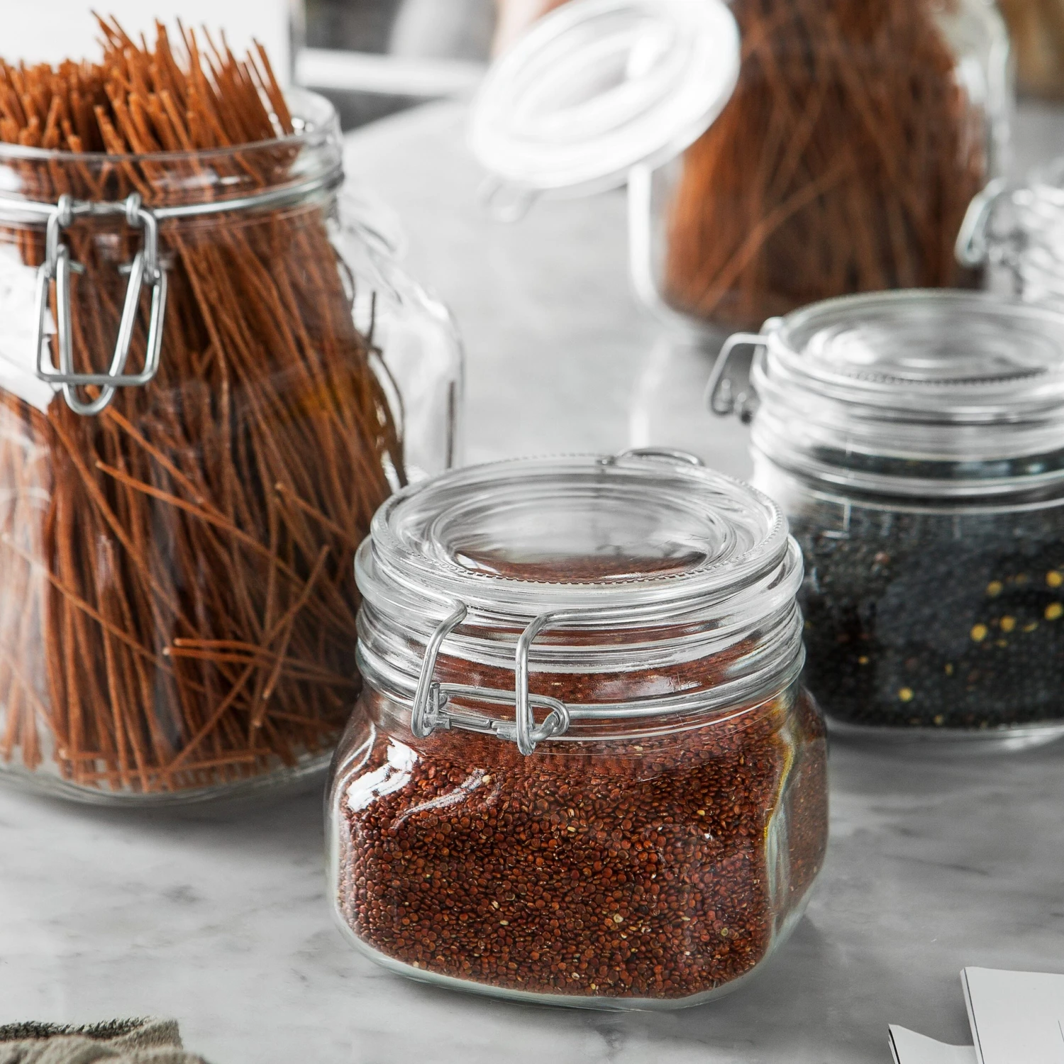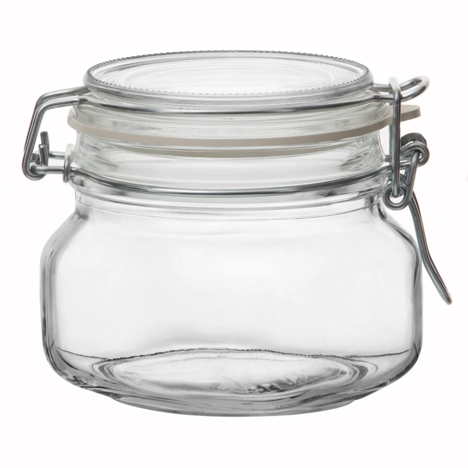 Diese Glasdose 0,5 l lässt sich mit einem passenden Deckel dicht verschließen, so dass das Aroma des jeweiligen Produktes lange erhalten bleibt. Die Dose lässt sich vielfach einsetzen, um beispielsweise hausgemachte Gurken oder Marmeladen aufzubewahren. Der hochwertige Glasbehälter ist nach ISO-Norm 7086 zugelassen. Aufgrund des zeitlosen Designs lässt sie sich auch prima als Deko-Element in einem Regal verwenden. Der Deckel lässt sich einfach öffnen und schließen.