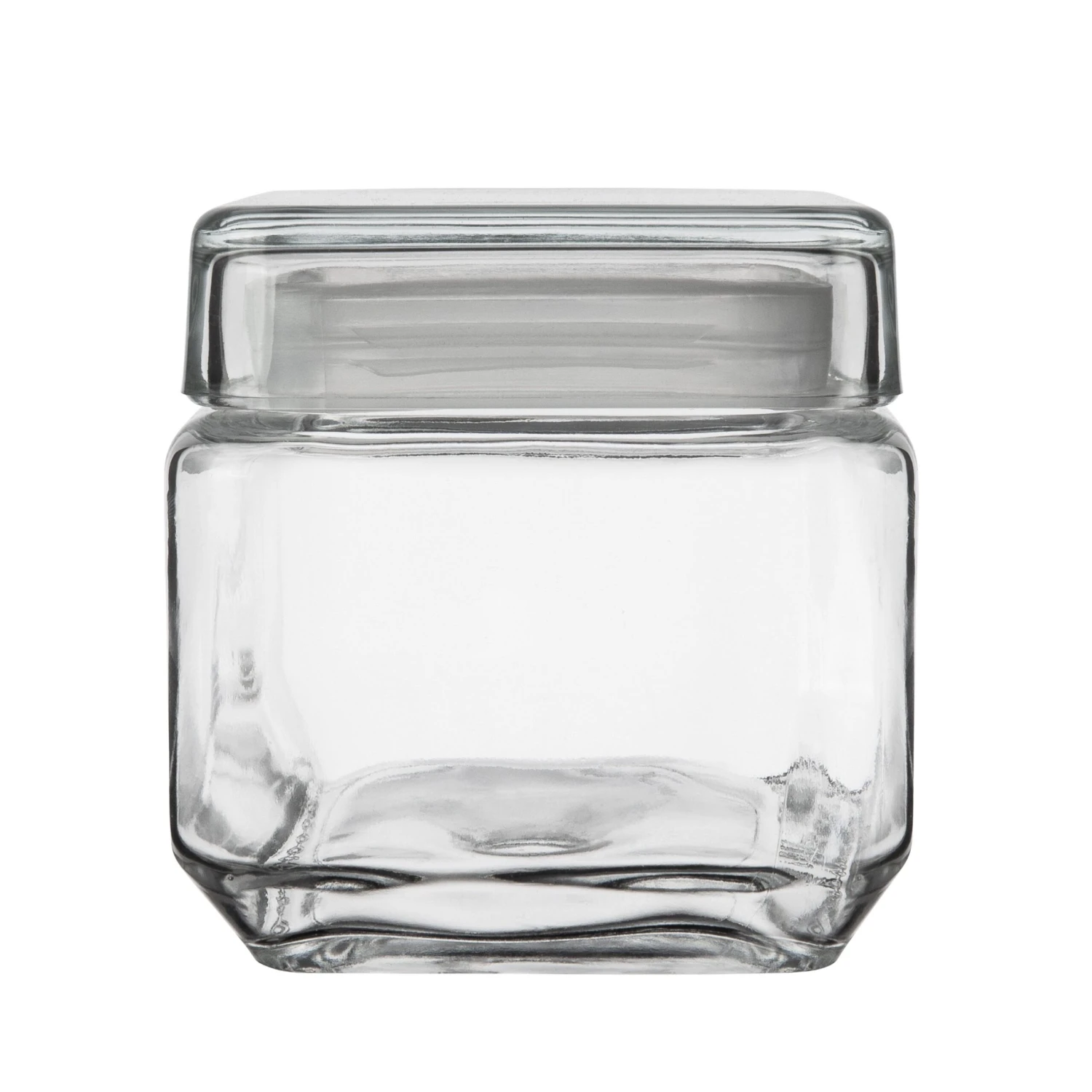 Schöne Aufbewahrungsdose aus Glas für Müsli, Getreide, eingelegtes Gemüse und mehr. Die rechteckige Glasaufbewahrung für Lebensmittel hat ein Volumen von 0,8 Litern. Der Deckel ist ebenfalls aus Glas und hat einen dicht schließenden Ring aus PE-Plastik. Die Dose ist in vier Größen erhältlich.