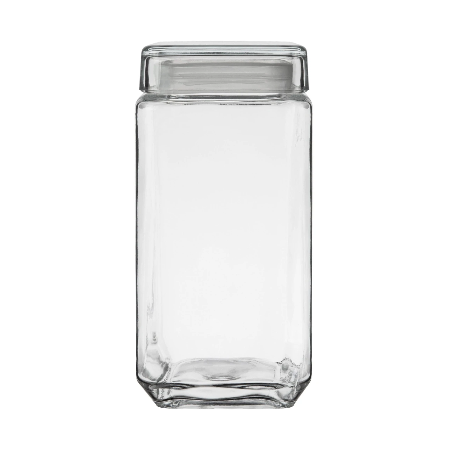 Schöne Aufbewahrungsdose aus Glas für Müsli, Getreide, eingelegtes Gemüse und mehr. Die rechteckige Glasaufbewahrung für Lebensmittel hat ein Volumen 2 Litern. Der Deckel ist ebenfalls aus Glas und hat einen dicht schließenden Ring aus PE-Plastik. Die Dose ist in vier Größen erhältlich.