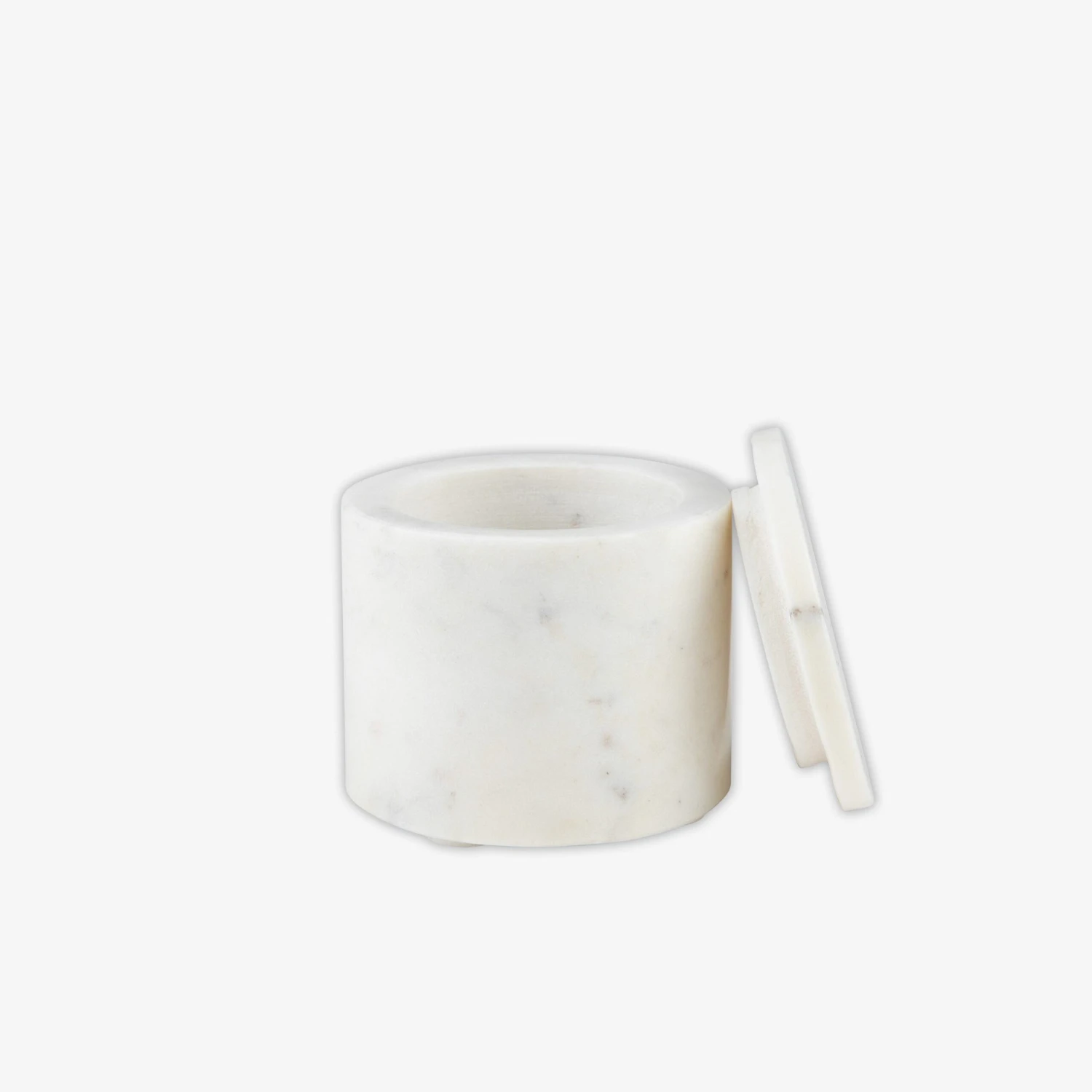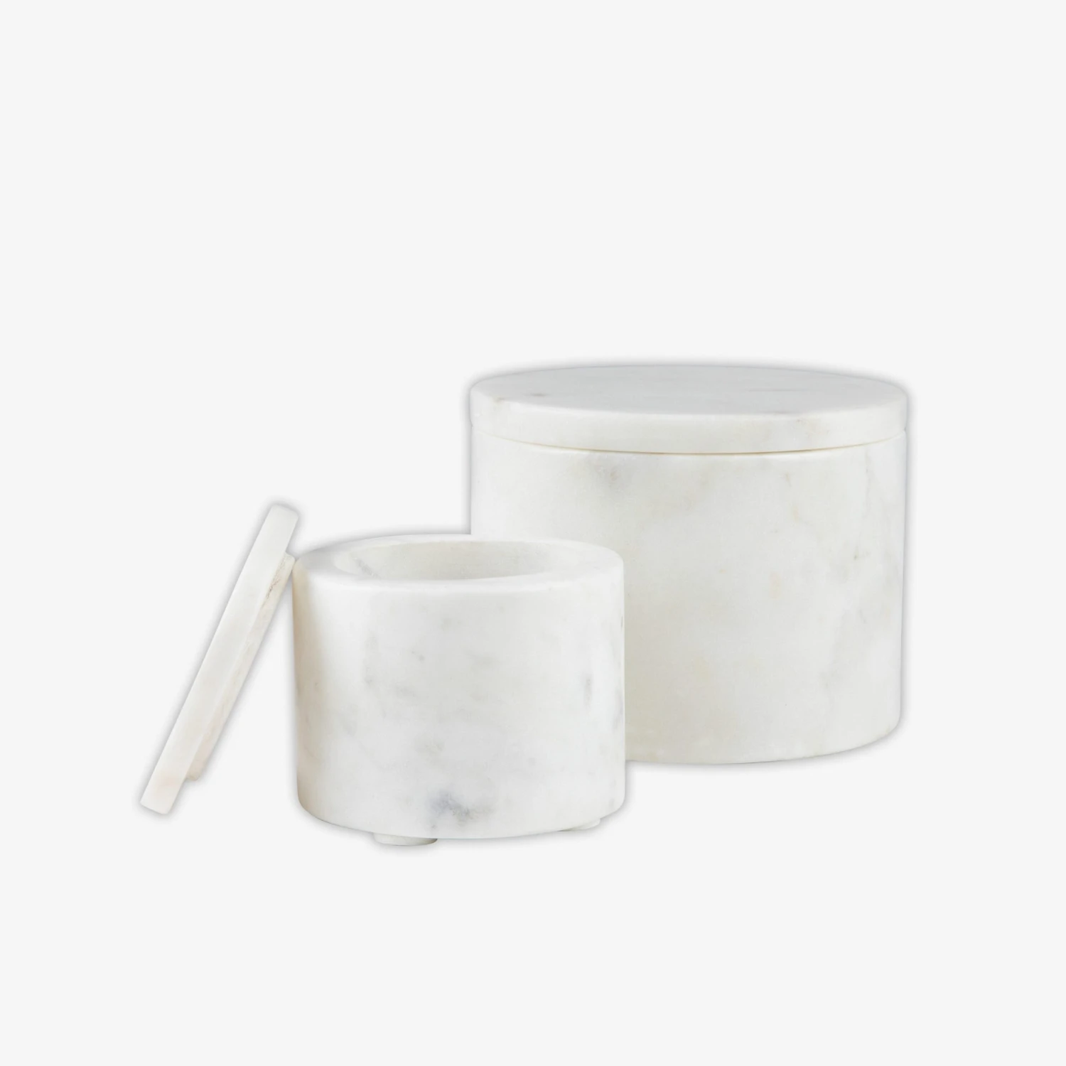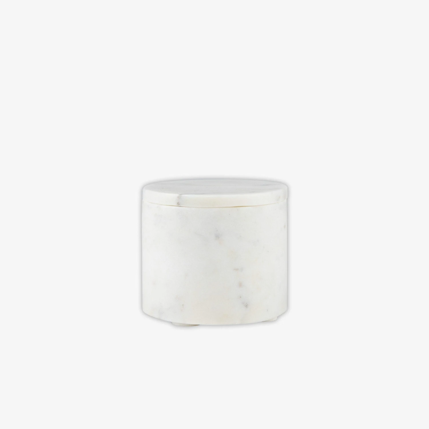 | Stilvolles Kästchen mit weißem Marmordeckel, das in jeden Raum passt. Perfekt für die Aufbewahrung kleiner Geheimnisse oder alltäglicher Dinge, über die man den Überblick behalten möchte. Haarbänder oder Baumwollpads im Badezimmer, Streichholzschachteln im Wohnzimmer oder warum nicht Schmuck im Schlafzimmer? Teil einer Kollektion von Produkten aus weißem Marmor. Die Box ist in zwei Größen erhältlich.Maße: H 6 cm, Ø 7 cm. |