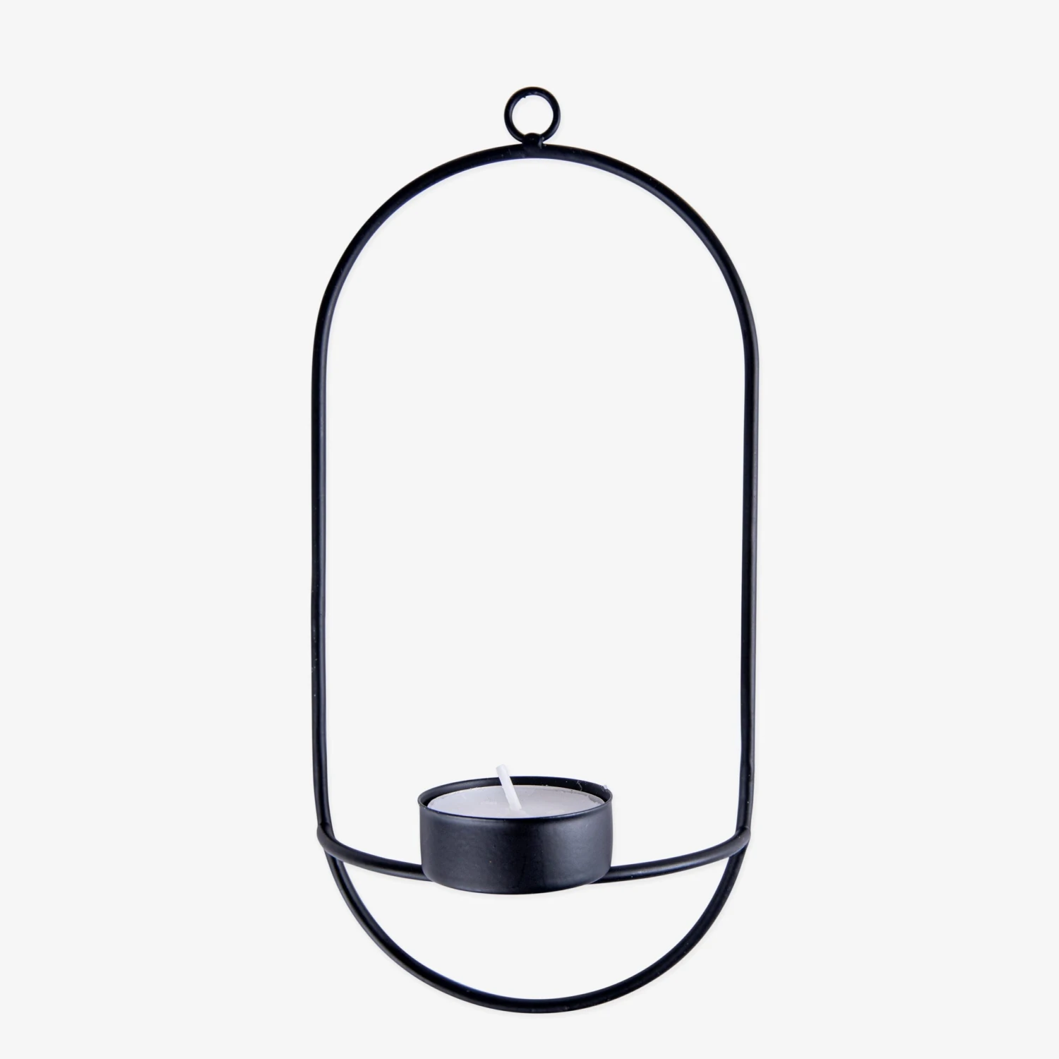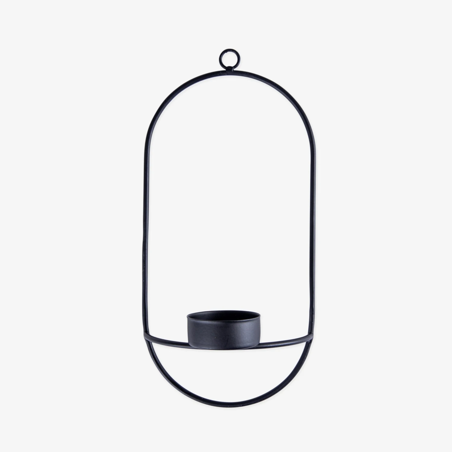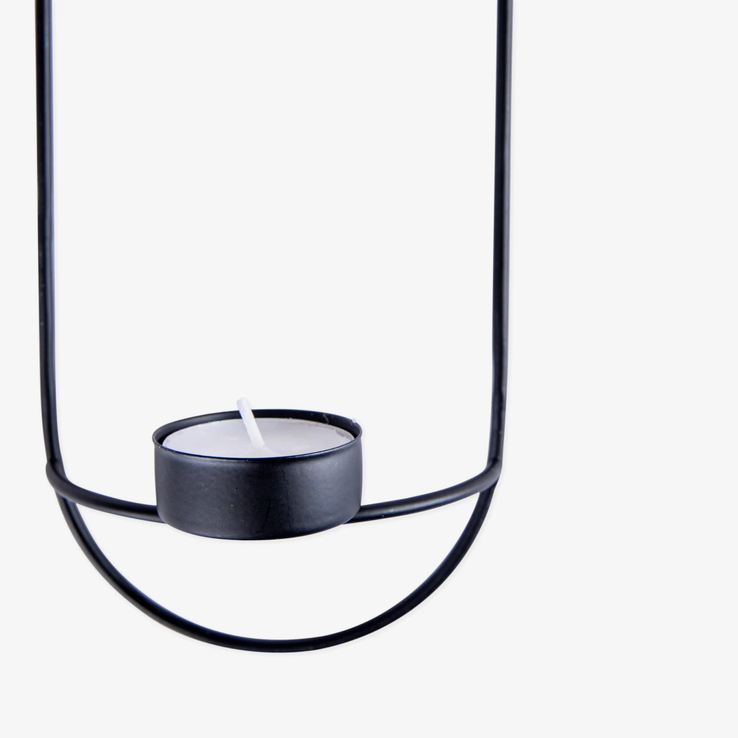 Stilvoller Kerzenhalter aus Metall für Teelichter zum Aufhängen an der Wand. Toll allein oder in Kombination mit anderen Leuchtern. Maße: H 21,5 B 6,5 L 11 cm. Pulverbeschichtetes Metall.