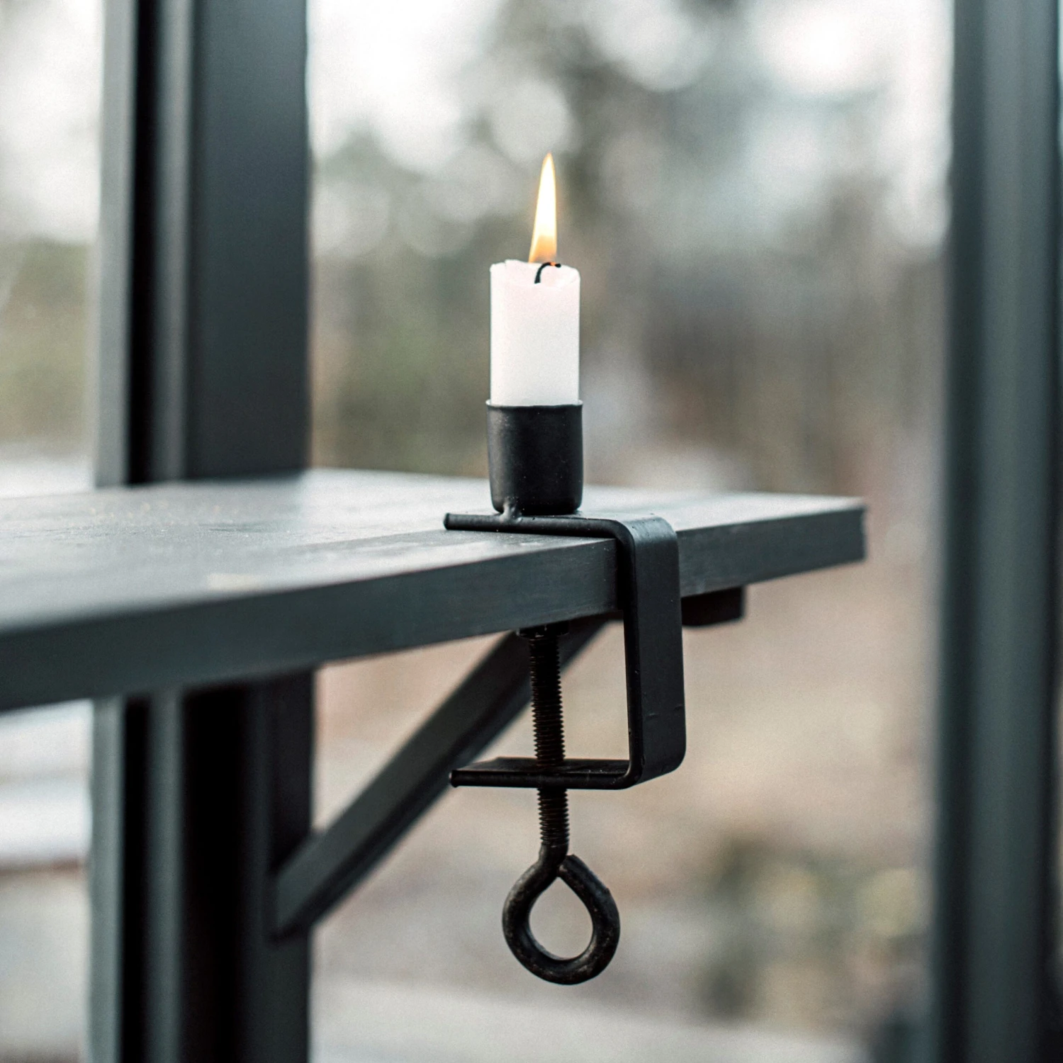 Kerzenhalter aus schwarzem Eisen, der sich festschrauben lässt. Der Kerzenhalter ist für Kronleuchter ausgelegt. Der Kerzenhalter kann auf bis zu 5 cm dicke Untergründe geschraubt werden. Um den Kerzenhalter anschrauben zu können, muss man den Halter mindestens 3,5 cm in die Oberfläche einführen können, damit die Schraube befestigt werden kann. Man kann ihn maximal 5 cm einführen. Die Kerzenhalter haben ein schönes rustikales Aussehen mit unterschiedlich starker Patina. Die oxidierte Oberfläche macht sie zu Unikaten, daher kann das Aussehen dieser Kerzenhalter variieren.