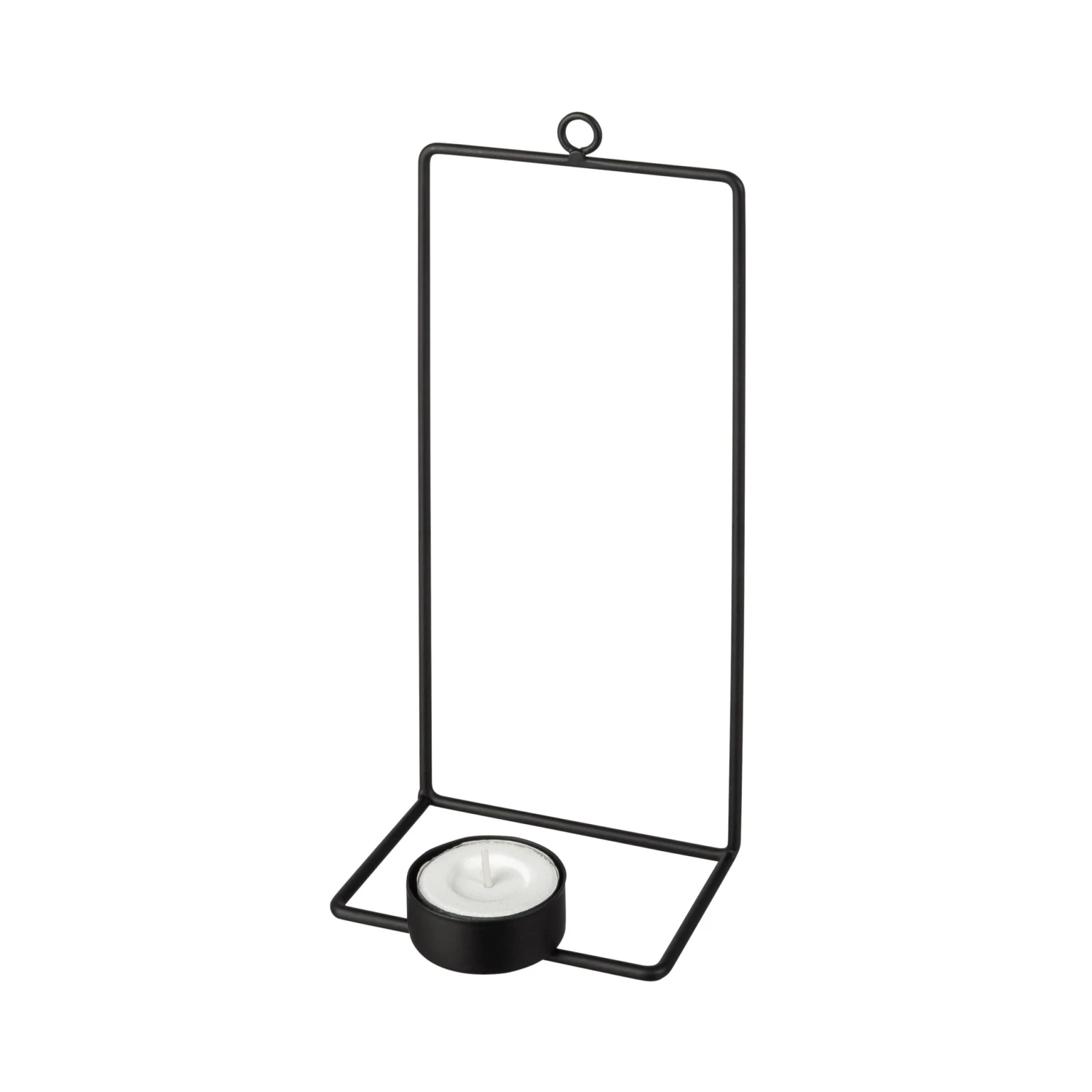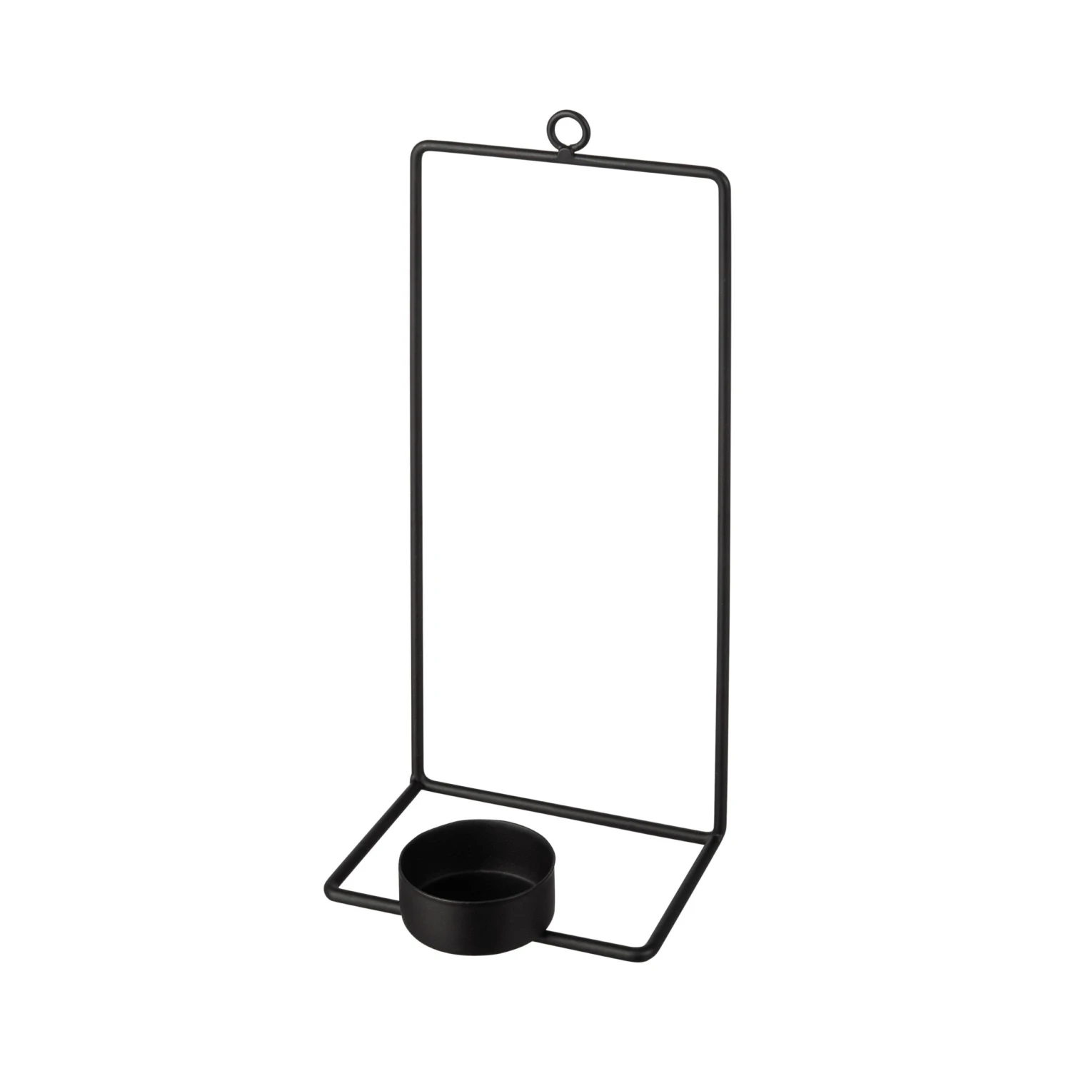 Schwarzer Kerzenständer aus Metall, der an die Wand gehangen werden kann. Perfekt für ein Teelicht.
