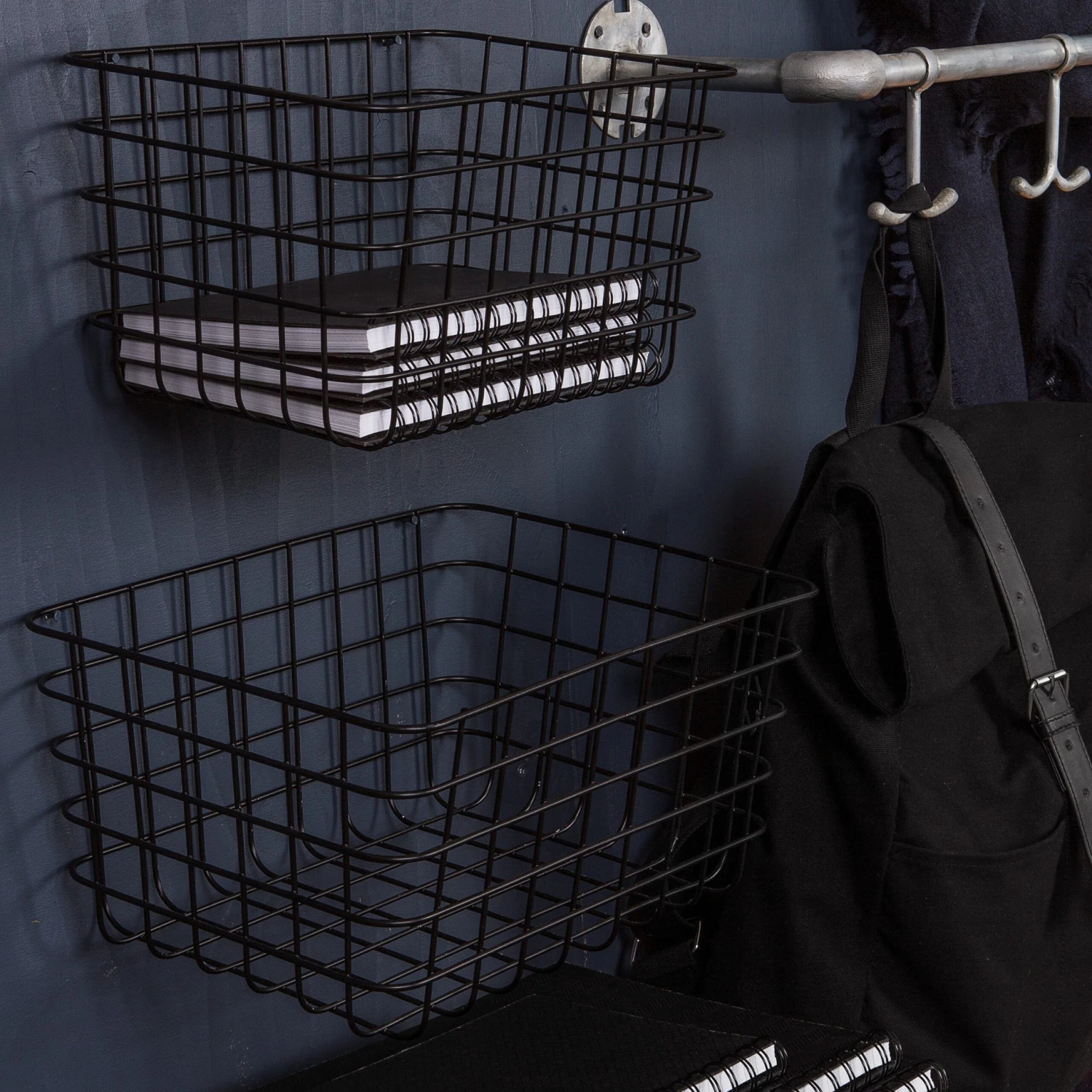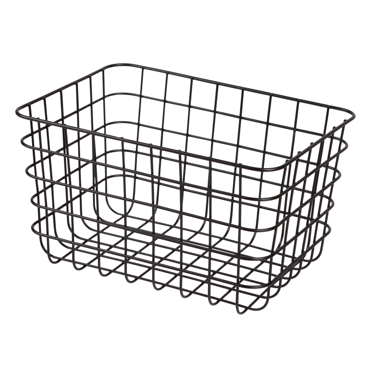 Schwarzer Metallkorb in zeitlosem Design, ideal für die Aufbewahrung von kleineren Accessoires oder Zeitschriften. Passt auch wunderbar ins Bücherregal. Höhe 16 cm. Erhältlich in zwei verschiedenen Größen.