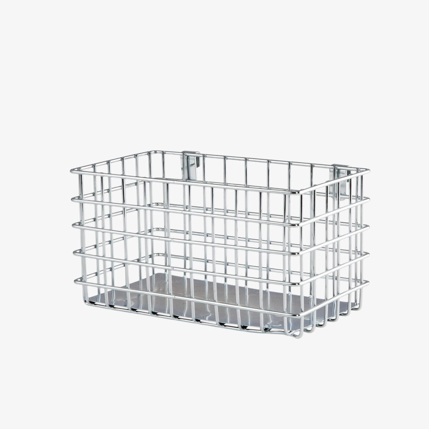 Ordnung und Sauberkeit! Verchromter Korb mit Haken an der Längsseite zum einfachen Aufhängen an unseren beliebten Gittertafeln.