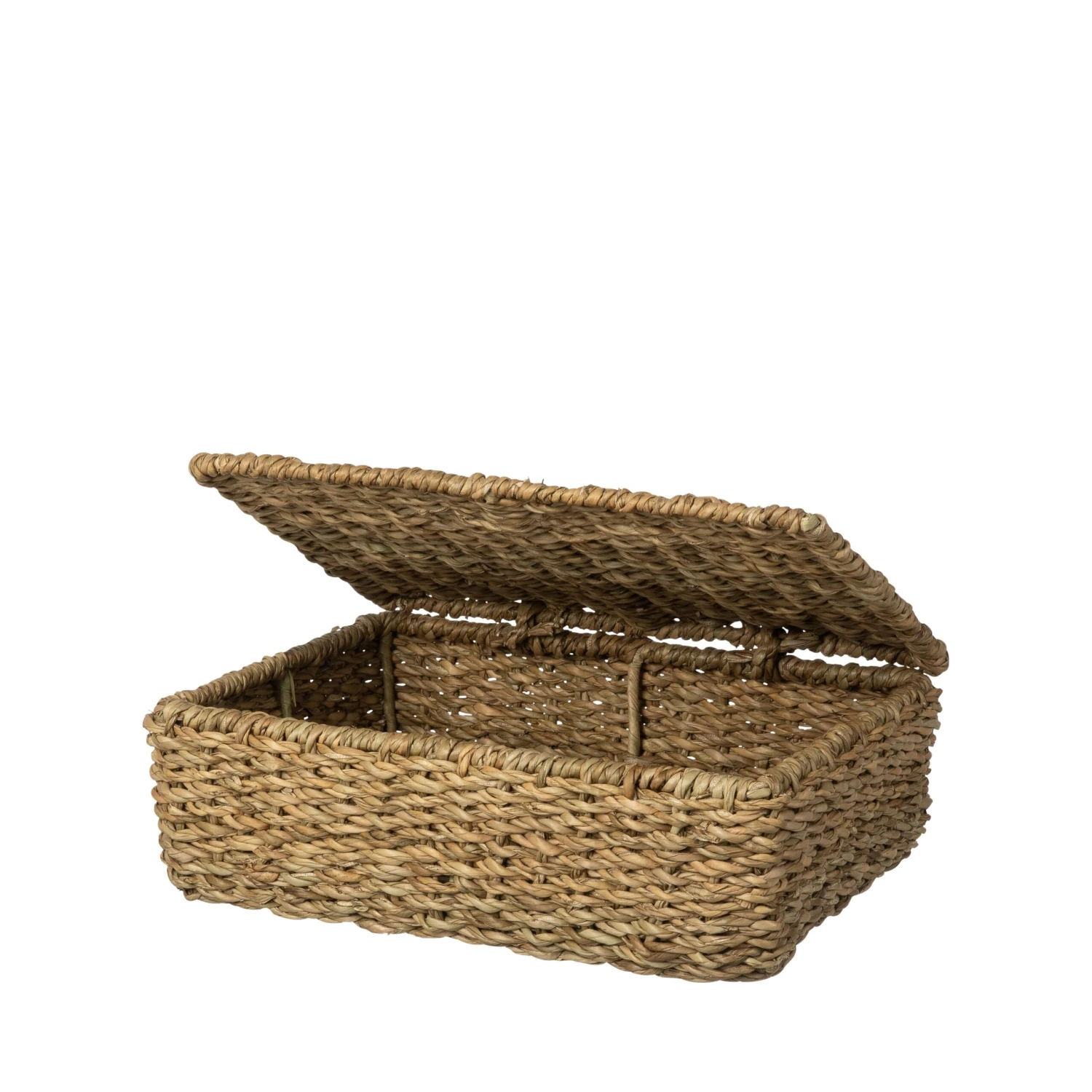 Rechteckiger Korb mit Deckel. Hergestellt aus einem Gras, das sich Hoogla nennt. Erhältlich in drei Größen.
