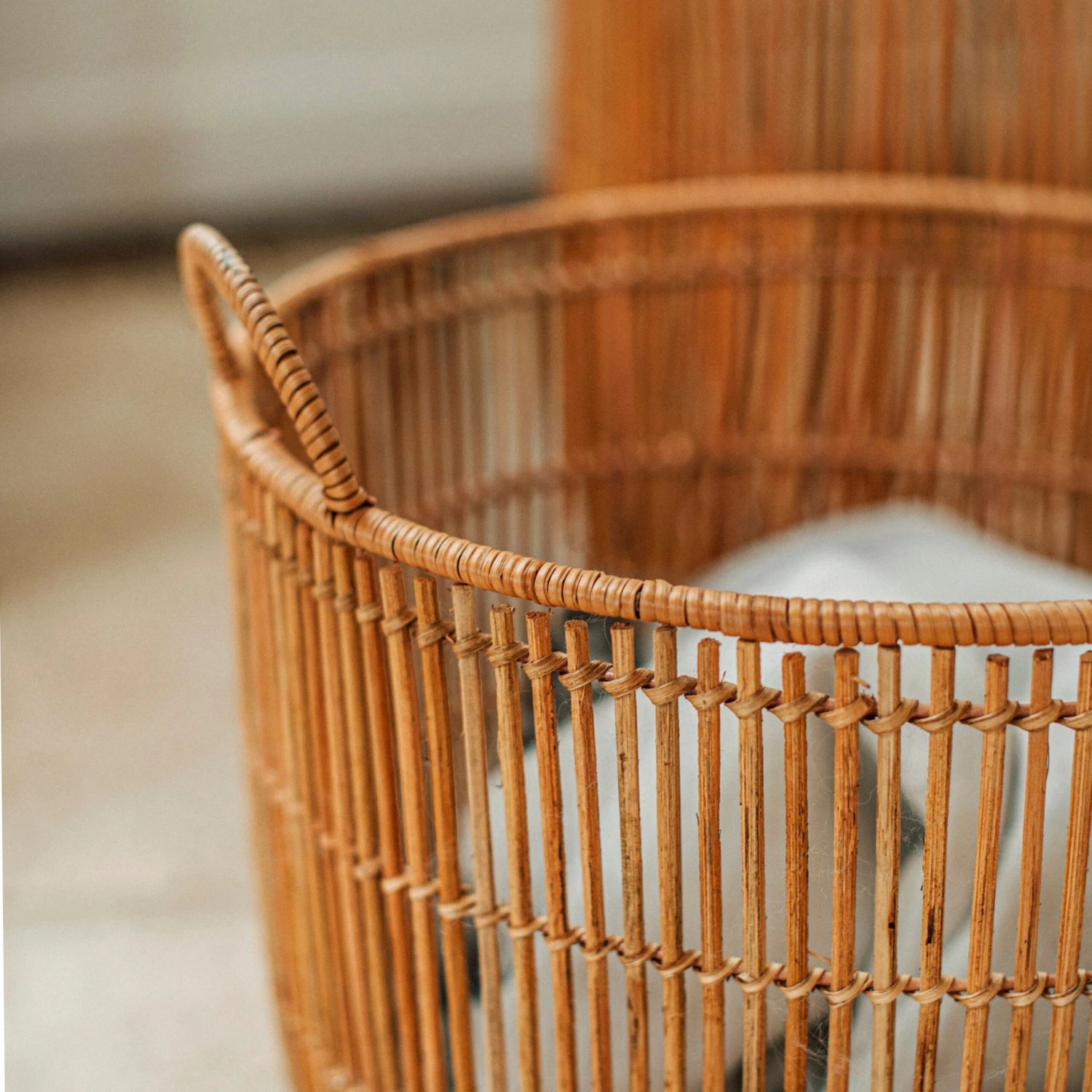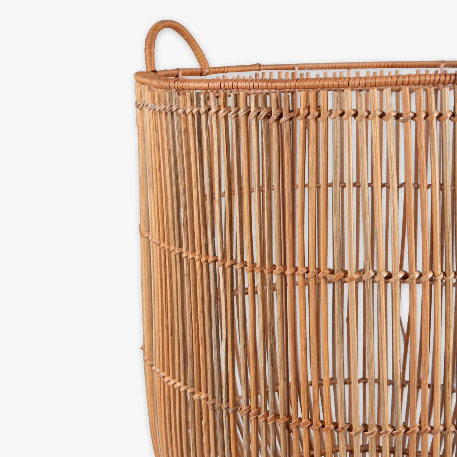 Ein stilvoller Rattankorb, der in drei Größen erhältlich ist. Er macht sich alleine gut, sieht aber auch als Set toll aus. Die Konstruktion ist mit einem inneren Metalldraht verstärkt, damit der Korb stabil bleibt und seine Form behält. Verwende ihn als Aufbewahrungskorb oder als dekoratives Element.Maße: H 40 cm Ø 45 cm.