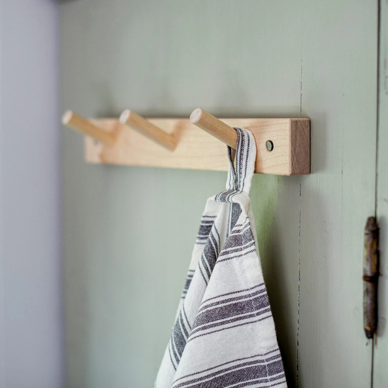 Stilreine Leiste aus Buche mit 9 Aufhängern. Das Dekorieren mit einer solchen Leiste ist einfach und macht einfach Spaß! Du entscheidest, wofür du die Leiste verwenden möchtest. Kleidung, Dekoration oder praktische Dinge, die du immer griffbereit haben willst. Wofür wirst du dich entscheiden? Kann mit anderen Leisten kombiniert werden, wenn man sie z. B. verlängern will.Hergestellt aus massiver Birke. Länge 29,5 cm.