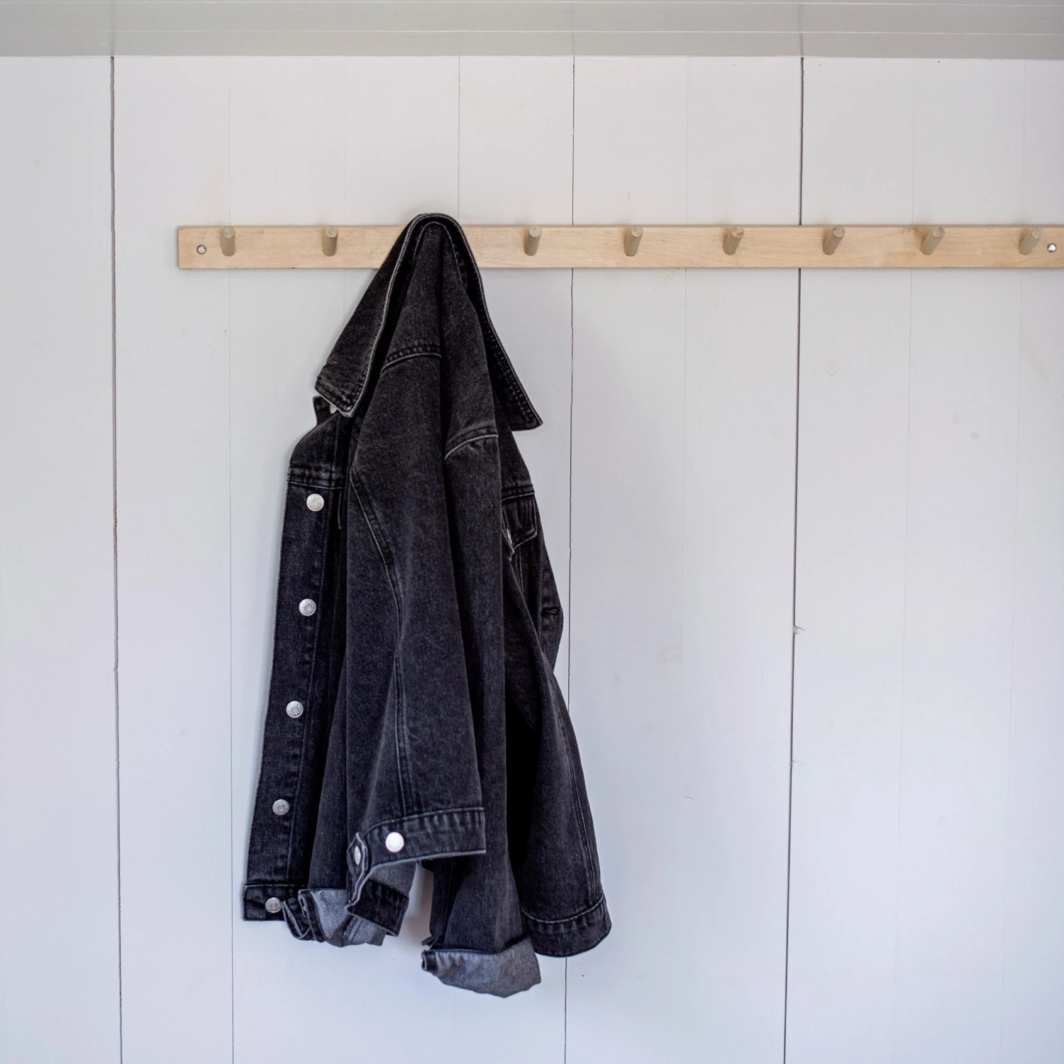 Lange und stilvolle Leiste mit 9 Aufhängern. Das Dekorieren mit einer solchen Leiste ist einfach und macht einfach Spaß! Du entscheidest, wofür du die Leiste verwenden möchtest. Kleidung, Dekoration oder praktische Dinge, die du immer griffbereit haben willst. Wofür wirst du dich entscheiden? Du kannst mehrere Leisten nebeneinander anbringen. Erhältlich in verschiedenen Längen.