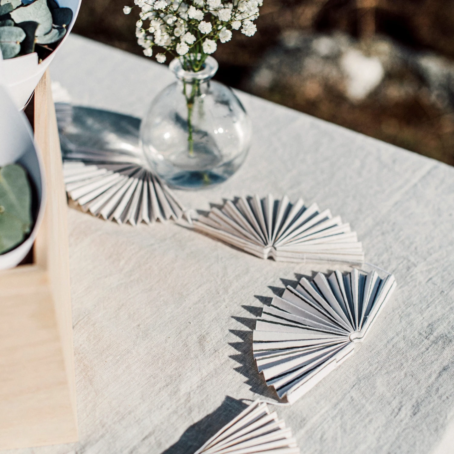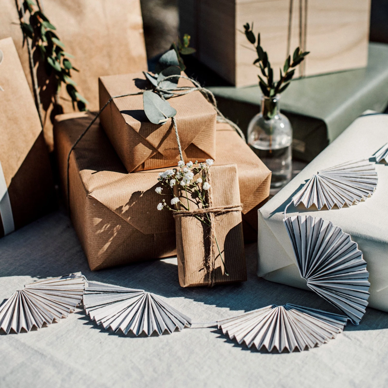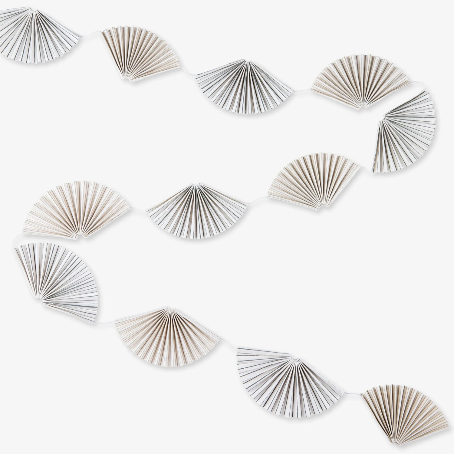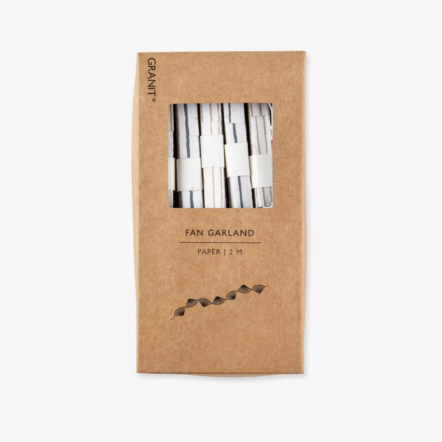 Gibt es etwas Festlicheres als eine Girlande? Unsere hübsche Papiergirlande ist aus 100 % Recyclingpapier besteht aus fächerförmig gefalteten Einzelteilen, die an einer Baumwollschnur befestigt sind. Die Girlande ist 2 Meter lang. Cremeweiß mit grauen und beigen Streifen.Länge: 2 m.