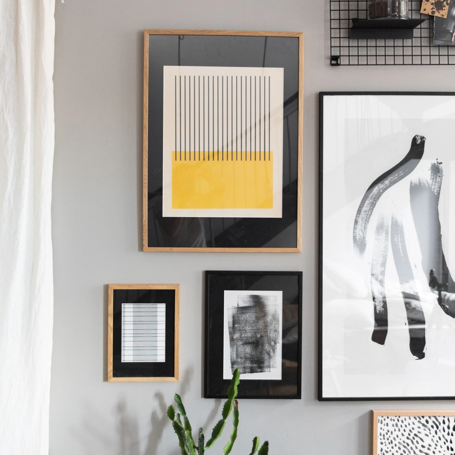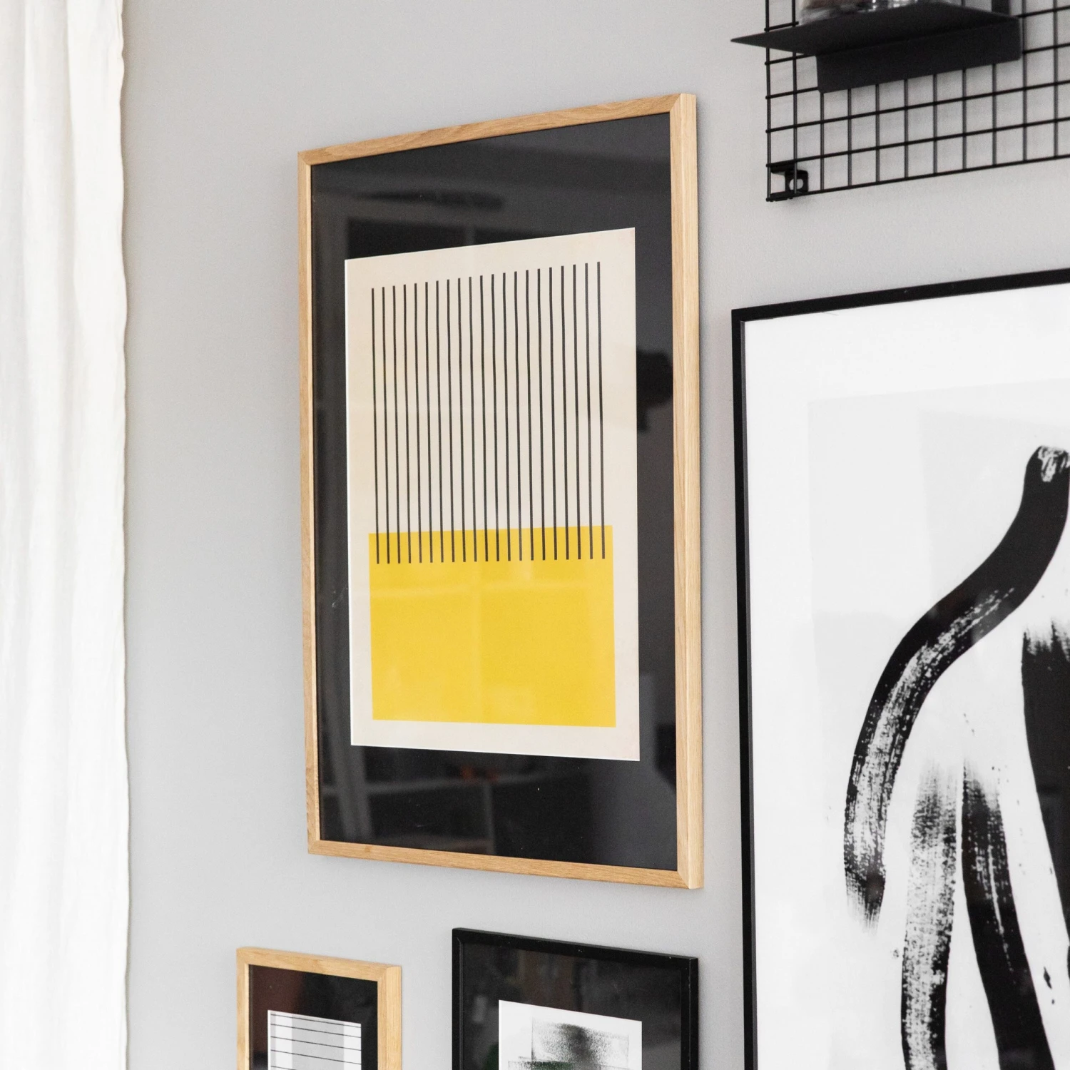 The picture inside will be shown at a surface of 39×49 cm. Made of acid-free cardboard, 1200 g paper with black paper core. The acid-free paper prevents neither the picture mount nor the posters from breaking down over time.