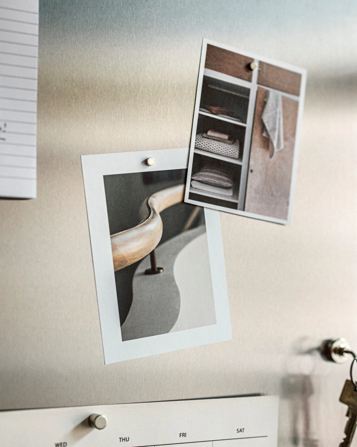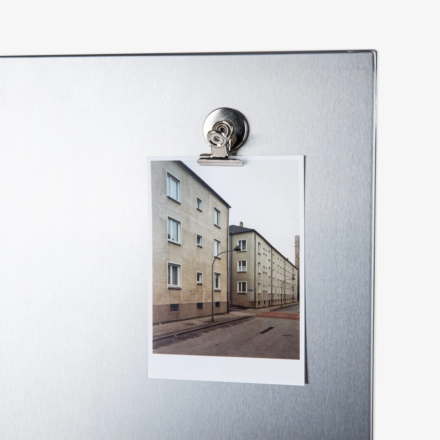 Stylisches schwarzes Brett aus 100% rostfreiem Stahl mit intelligenter Magnetfunktion, bei der du so viele oder so wenige Magnete verwenden kannst, wie du möchtest, um das Brett nach deinen Wünschen zu gestalten. Die Tafel kann mit unseren abwischbaren Stiften auch als Schreibtafel verwendet werden. Hervorragend kombinierbar mit unseren verschiedenen Gitterkörben in der gleichen Größe oder unserem Flurregal und Kleiderbügel aus Edelstahl.