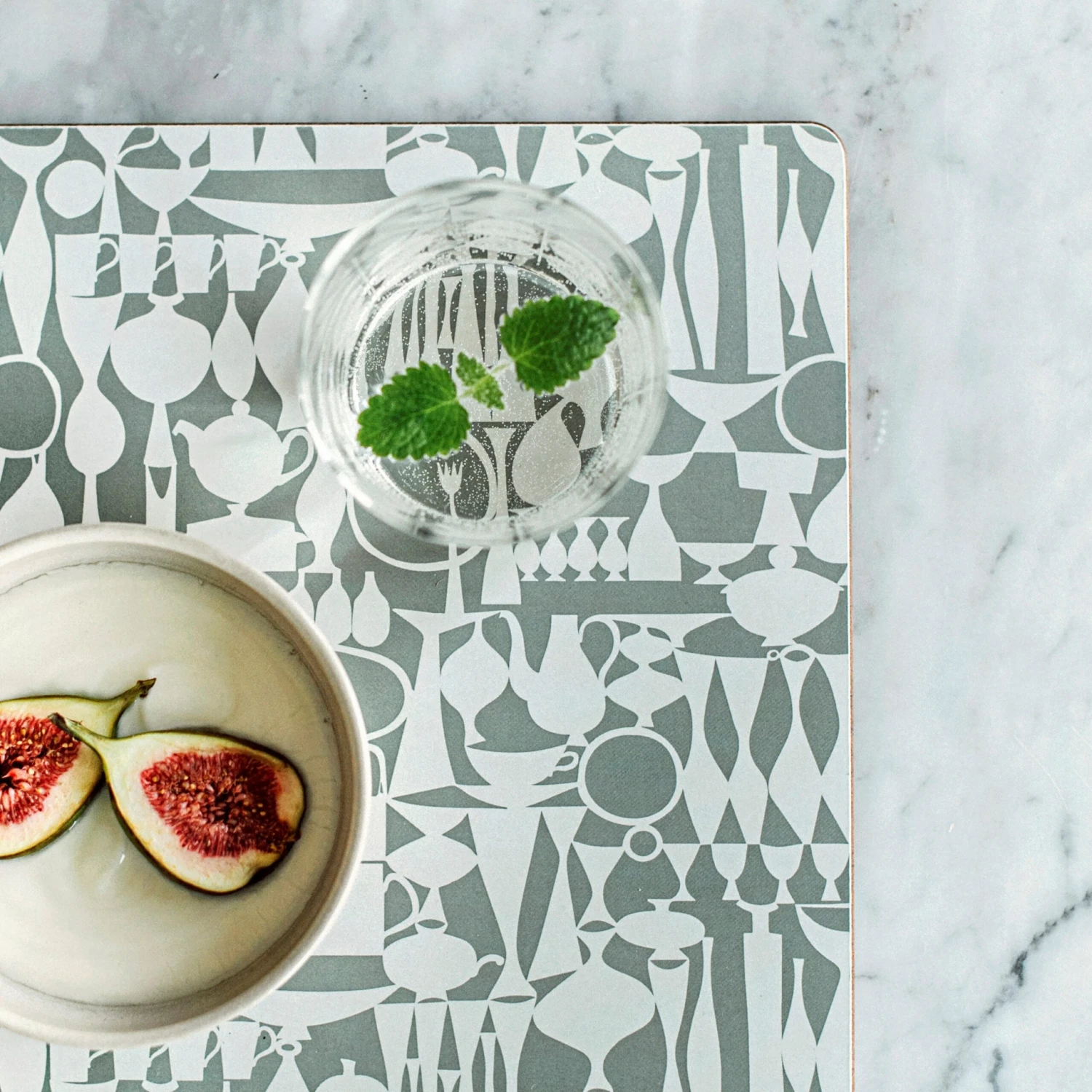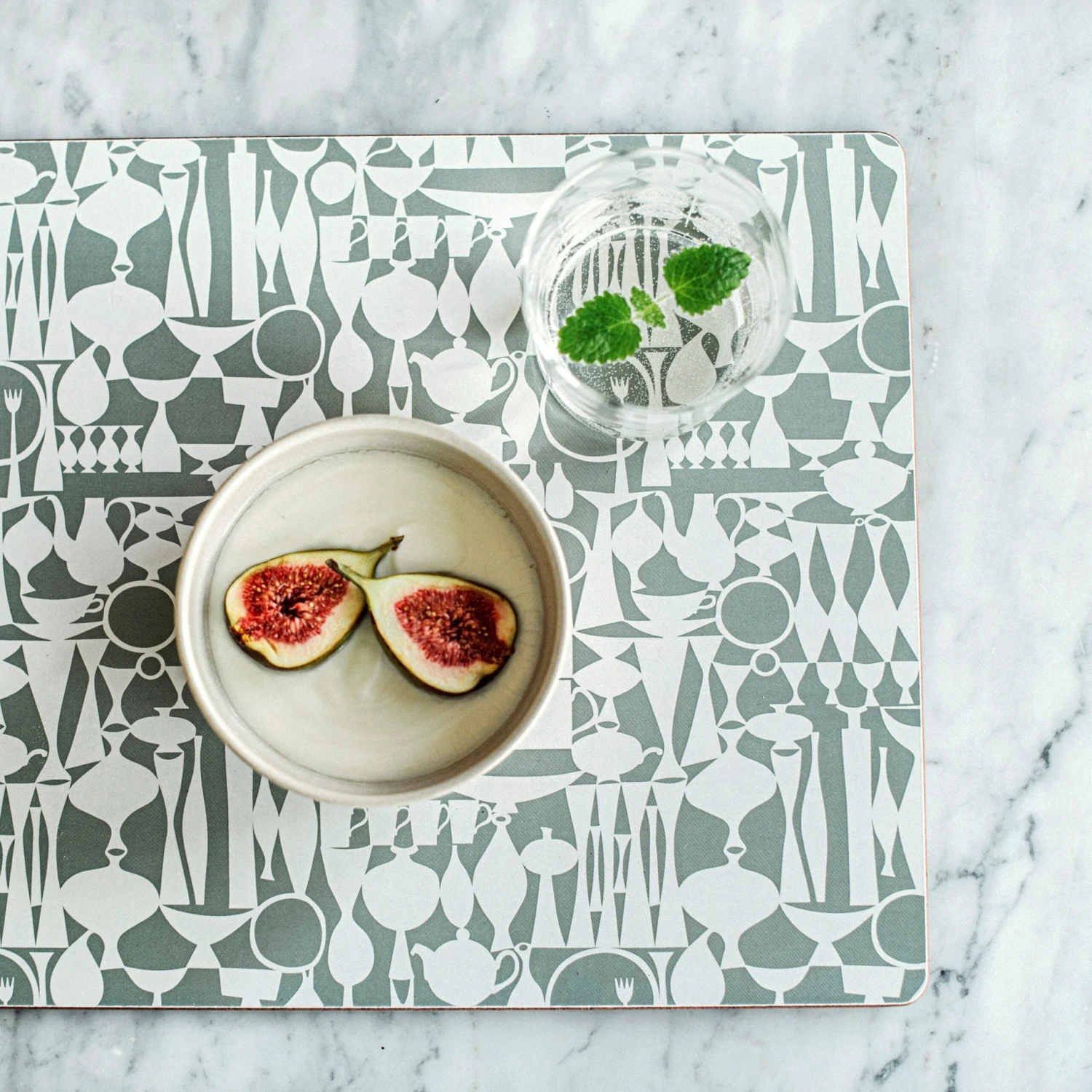 | Tischtset im 2er-Pack mit Korkunterlage zum Schutz der Tischoberfläche vor Kratzern und Flecken. Eine einzigartige Zusammenarbeit, bei der Granit ausgewählte, von Stig Lindberg entworfene Muster interpretiert hat. Gegenwart und Vergangenheit treffen aufeinander – und das mit einem tollen Twist! Für dich selbst oder zum Verschenken. Die Kollektion umfasst mehrere passende Artikel mit demselben Muster.Maße: 30 x 40 cm. WRAP – 1959 wurde Stig Lindberg gebeten, ein Geschenkpapier für das japanische Kaufhaus Seibu zu entwerfen. Später entwarf er ein ähnliches Geschenkpapier für die Porzellanfabrik Gustavsberg, das Granit für Küchenprodukte in den für Granit typischen Farben reproduziert hat. |