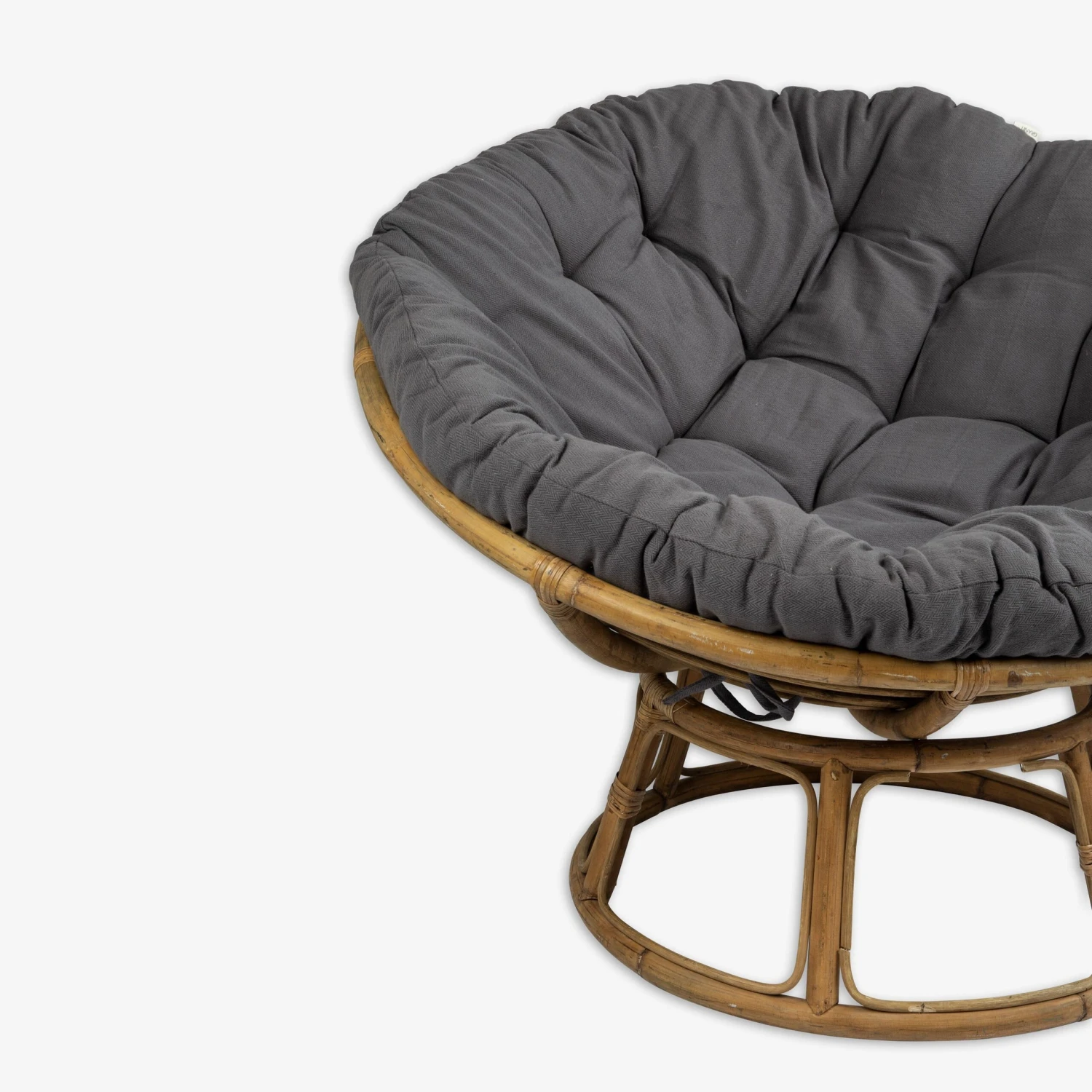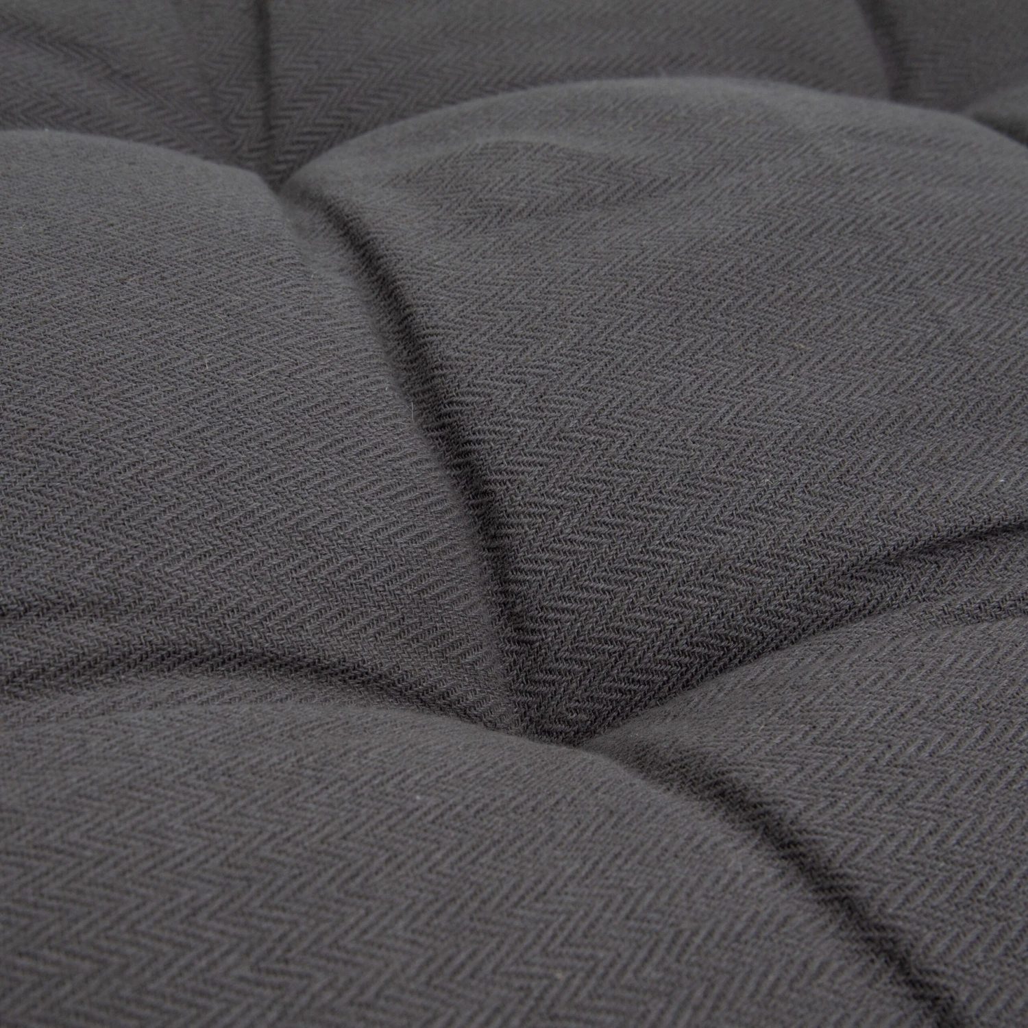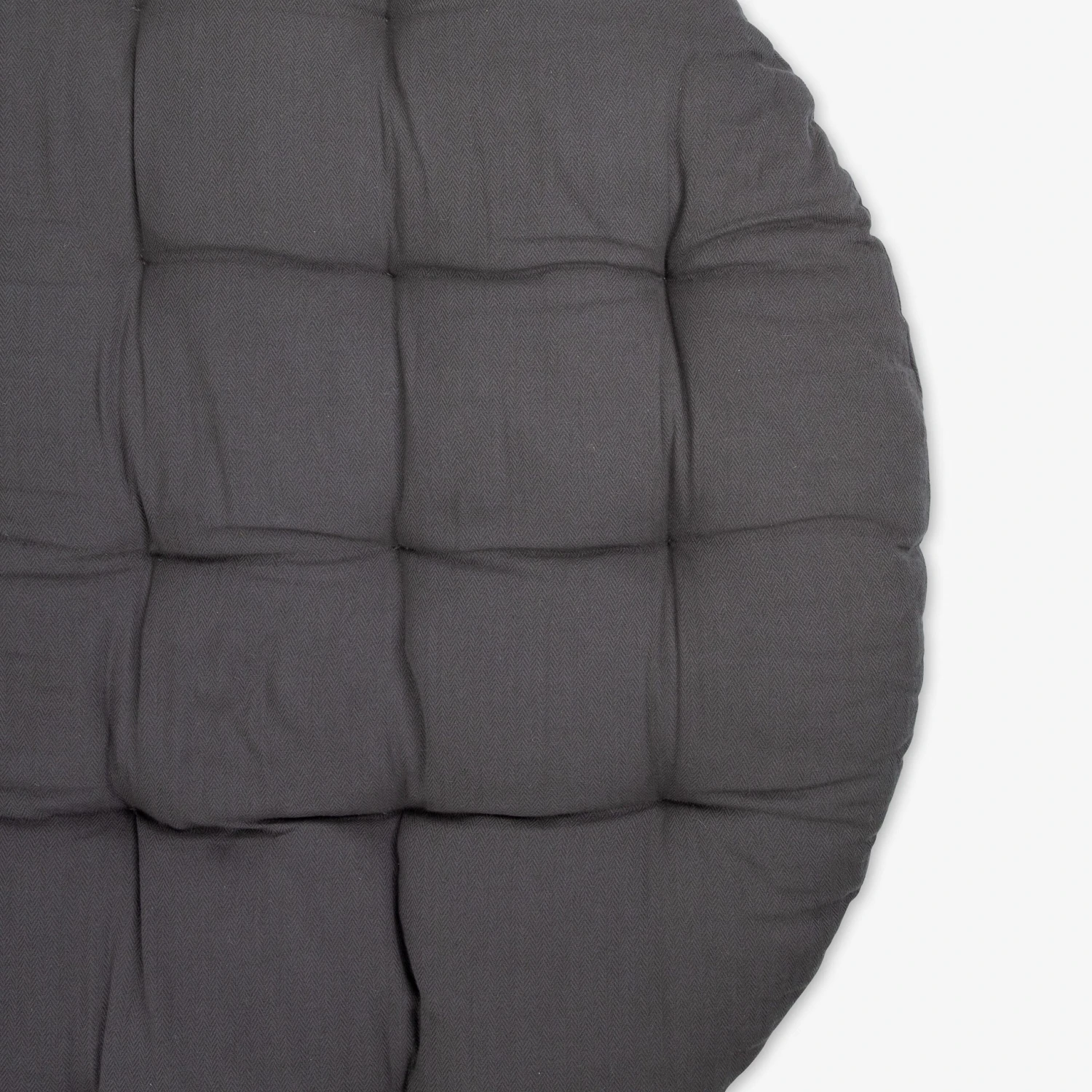| Ein großes, rundes, dickes Kissen in Dunkelgrau aus 100 % ÖKO TEX-zertifizierter Baumwolle. Das Kissen wird für unseren runden Rattansessel maßgefertigt, kann aber auch direkt als großes, schönes Sitzkissen auf dem Boden verwendet werden. Das Kissen ist an einer Seite mit Bändern versehen, mit denen es am runden Rahmen des Sessels befestigt wird. Füllung aus recycelter Baumwolle.Maße: L: 130 cm B: 130 cm H: 10 cm, Gewicht: 9 kg. |