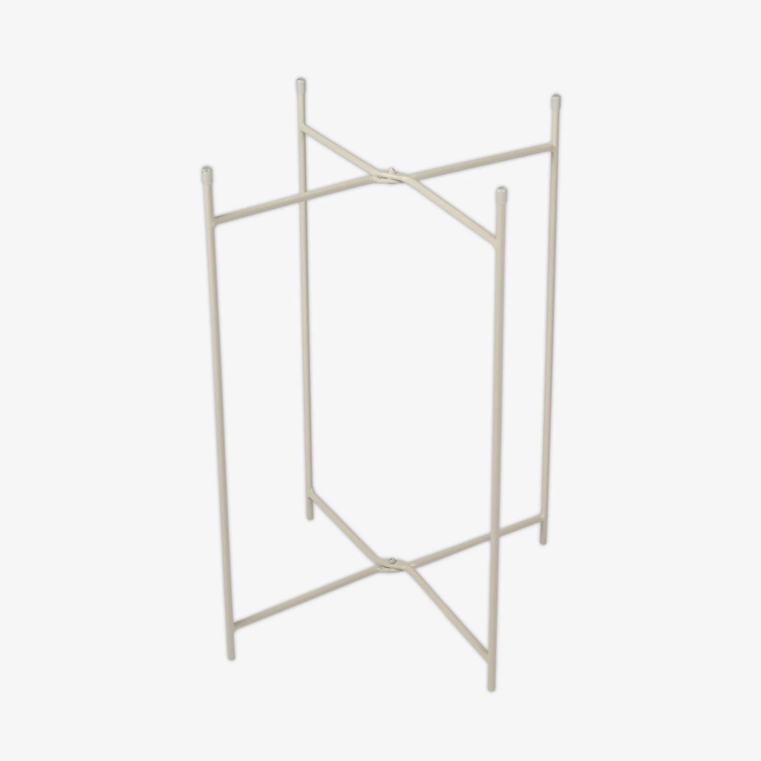 | Der Sockel ist aus Eisen mit einer warmgrauen, matten Oberfläche. Er ist klappbar und fasst Gegenstände mit einem Durchmesser von bis zu 40 Zentimetern. Mit einem runden Tablett kannst du deinen eigenen Tabletttisch gestalten.Maximale Belastung: 6 kg. |