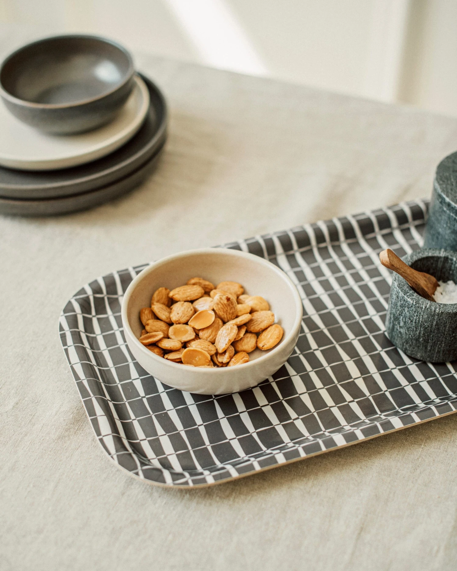 | Stilvolles und nützliches Tablett aus Birkenlaminat. Eine einzigartige Zusammenarbeit, bei der Granit ausgewählte, von Stig Lindberg entworfene Muster interpretiert hat. Gegenwart und Vergangenheit treffen aufeinander – und das mit einem tollen Twist! Das schöne Tablett ist ein perfektes Geschenk, zum sich Wünschen oder Verschenken. Spülmaschinenfest. Hergestellt aus FSC-zertifiziertem Birkenfurnier.Maße: 43 x 22 cm. BAMBOO – Als Stig Lindbergs Bambusmuster 1953 in seiner dritten Ausstellung im Lichtergarten von NK zum ersten Mal gezeigt wurde, waren die Meinungen der Kritiker geteilt. Bamboo ist ein sich wiederholendes, stilistisches Muster, das sich sowohl in der Wohnung als auch in einem öffentlichen Raum gut macht. Granit hat das Muster der für eine Kollektion an Küchenprodukten verwendet. |