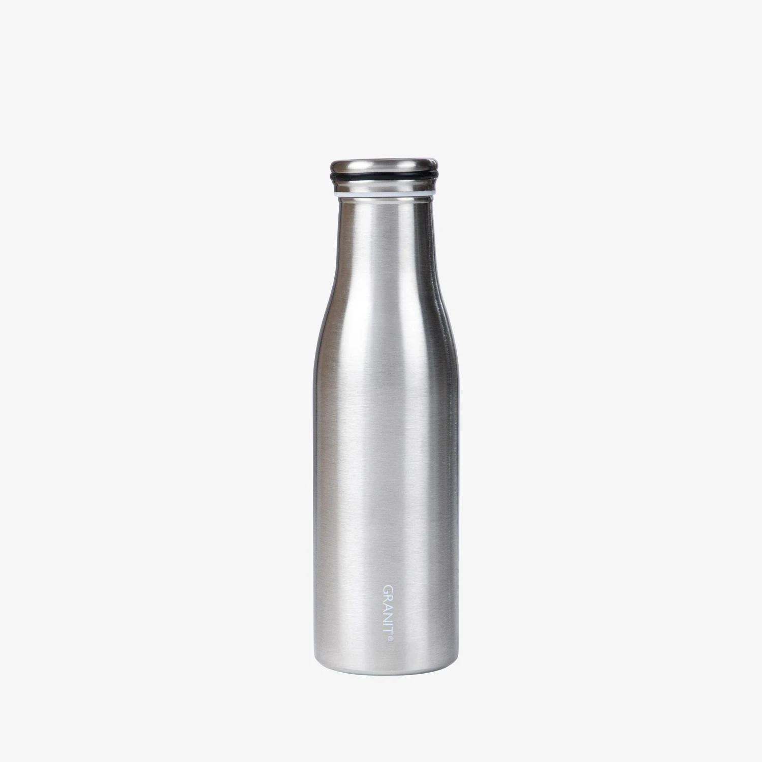 Thermosflasche aus Edelstahl mit Doppelwänden und Vakuumeffekt. Die Flasche hält dein Getränk lange Zeit kühl oder warm.