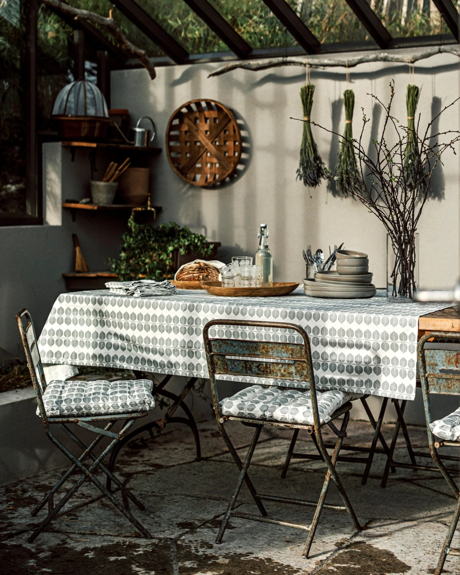 Stilvolle Tischdecke aus Leinenmix mit Druck im zeitlosen Berså-Muster. Passt gut zu den Gläsern und dem Sitzkissen mit demselben Muster. Die Beschichtung der Tischdecke besteht aus Acryl und das gesamte Produkt ist Öko-Tex-zertifiziert. Die Tischdecke hat einen GSM-Wert von 220, was bedeutet, dass der Stoff langlebig ist.