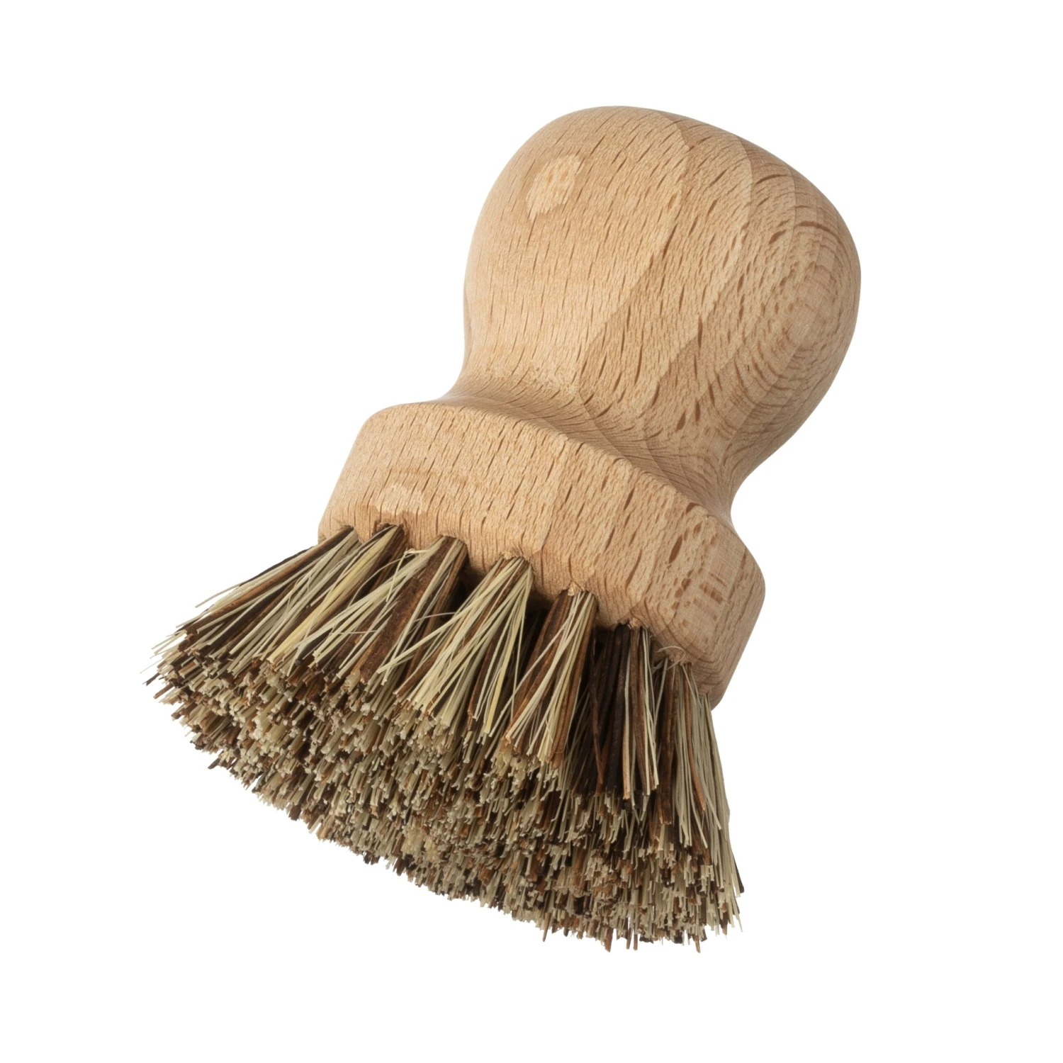 Runde, griffige Spülbürste, perfekt zum Schrubben von großen Töpfen und Pfannen. Hergestellt aus FSC-zertifiziertem Buchenholz und Naturborsten. Die Borsten sind recht steif, sodass man den gesamten Schmutz vom Boden der Pfanne entfernen kann.