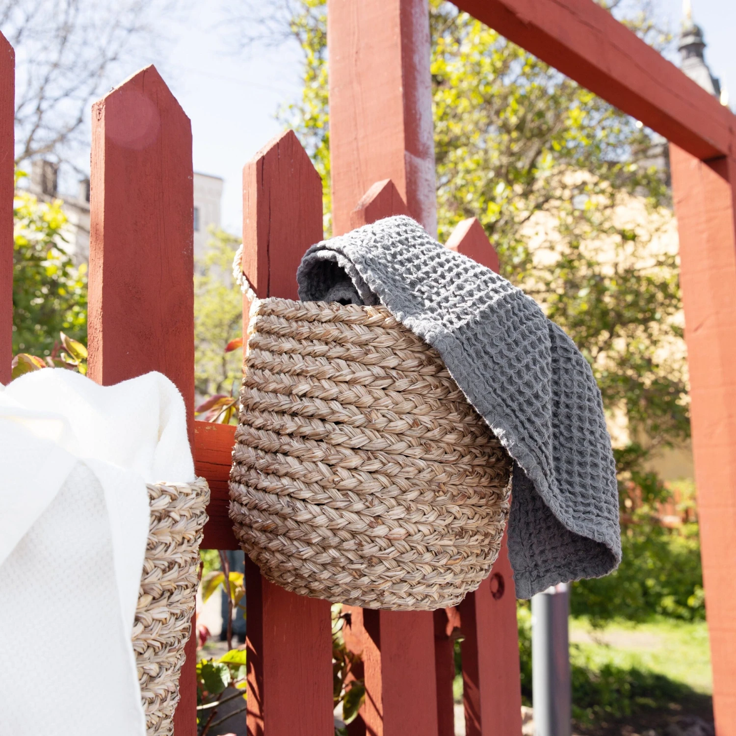Handgefertigter Korb zum Aufhängen an der Wand. Perfekt für die Aufbewahrung im Flur oder zur Dekoration mit Pflanzen im Garten.
